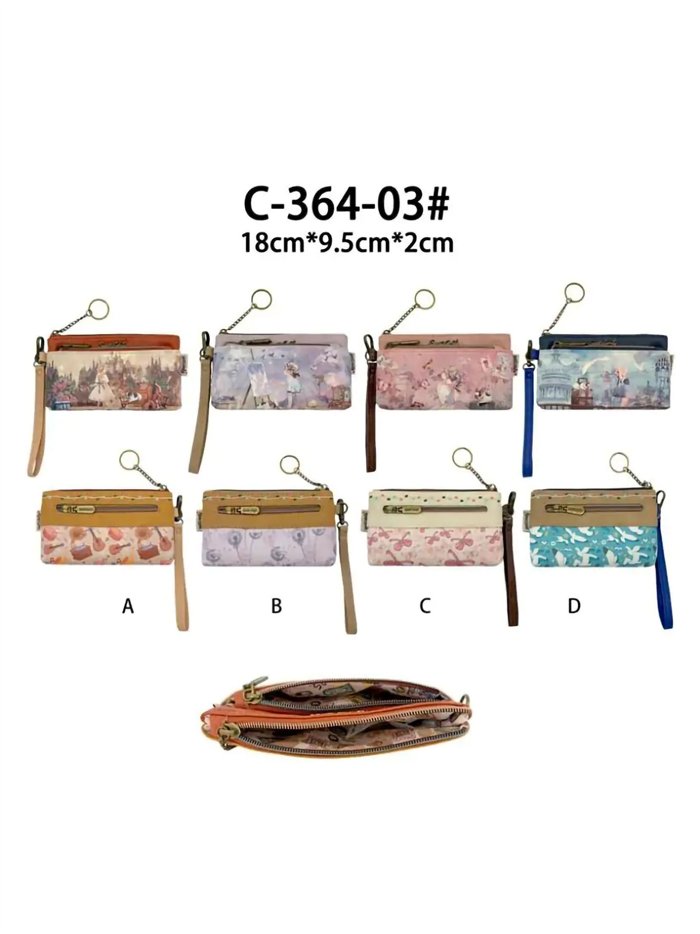 Monedero de polipiel. Cierre doble con cremalleras superiores.