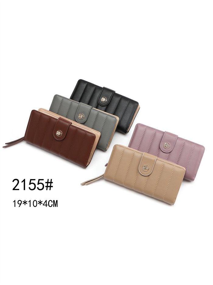 Cartera billetero grande acolchada rayas botón trébol