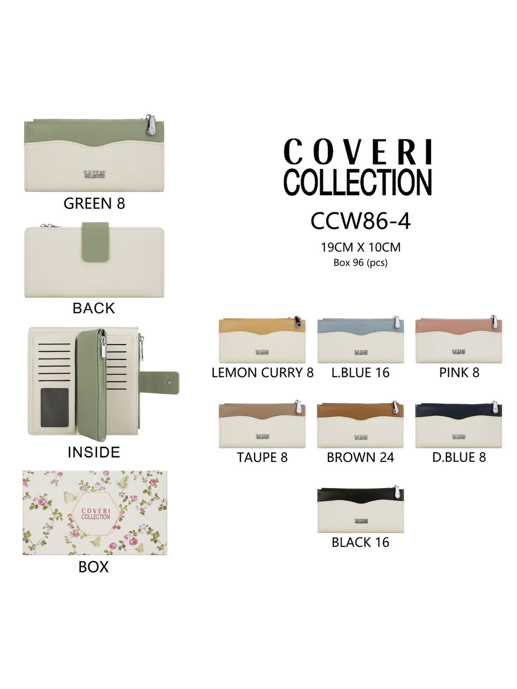 Cartera larga bicolor cremallera con caja regalo