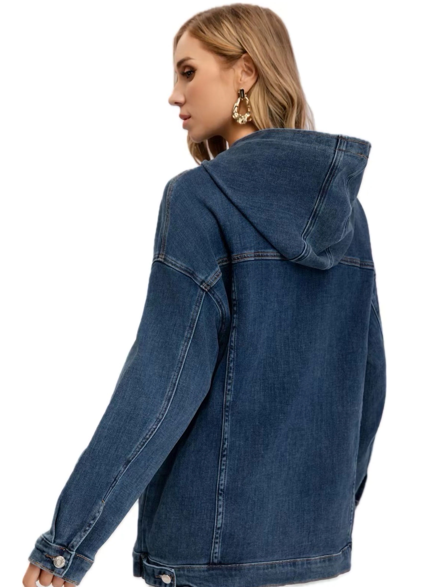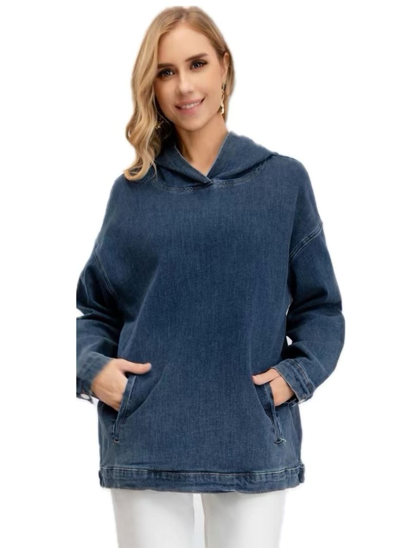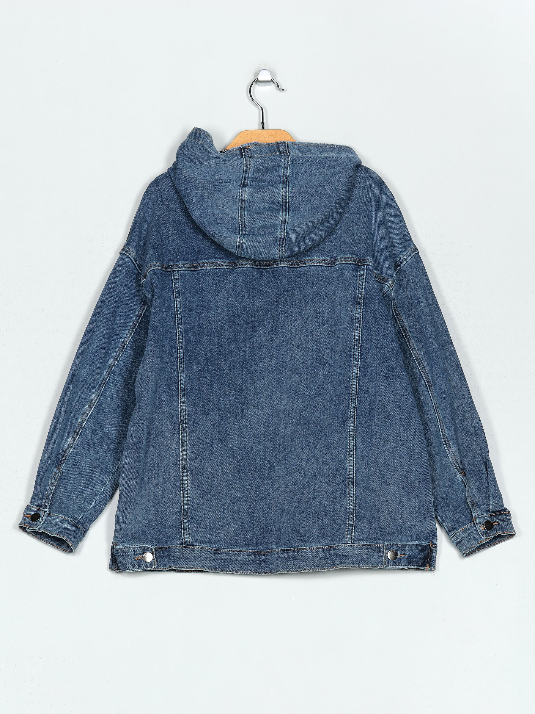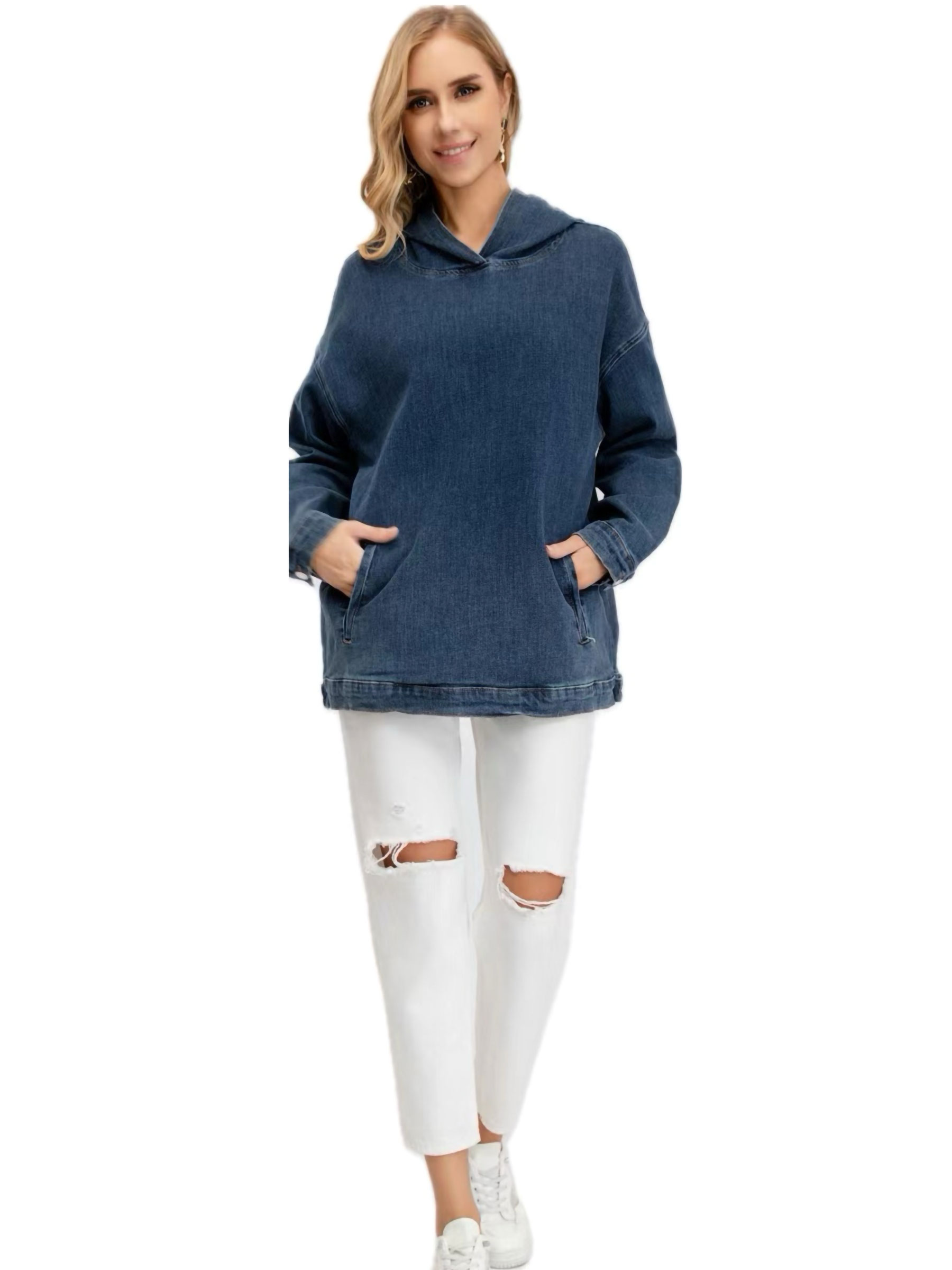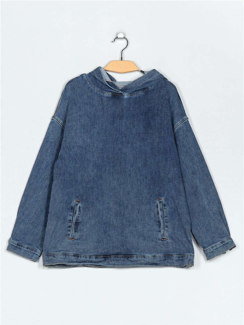Sudadera amplia denim con capucha. Dos bolsillos laterales. Manga larga.