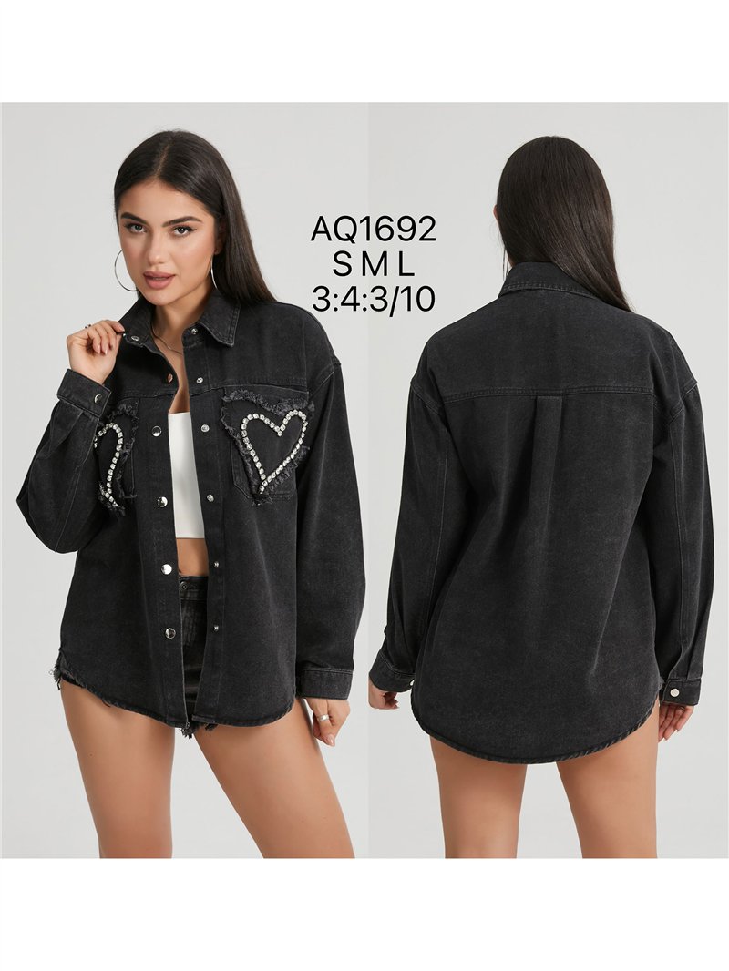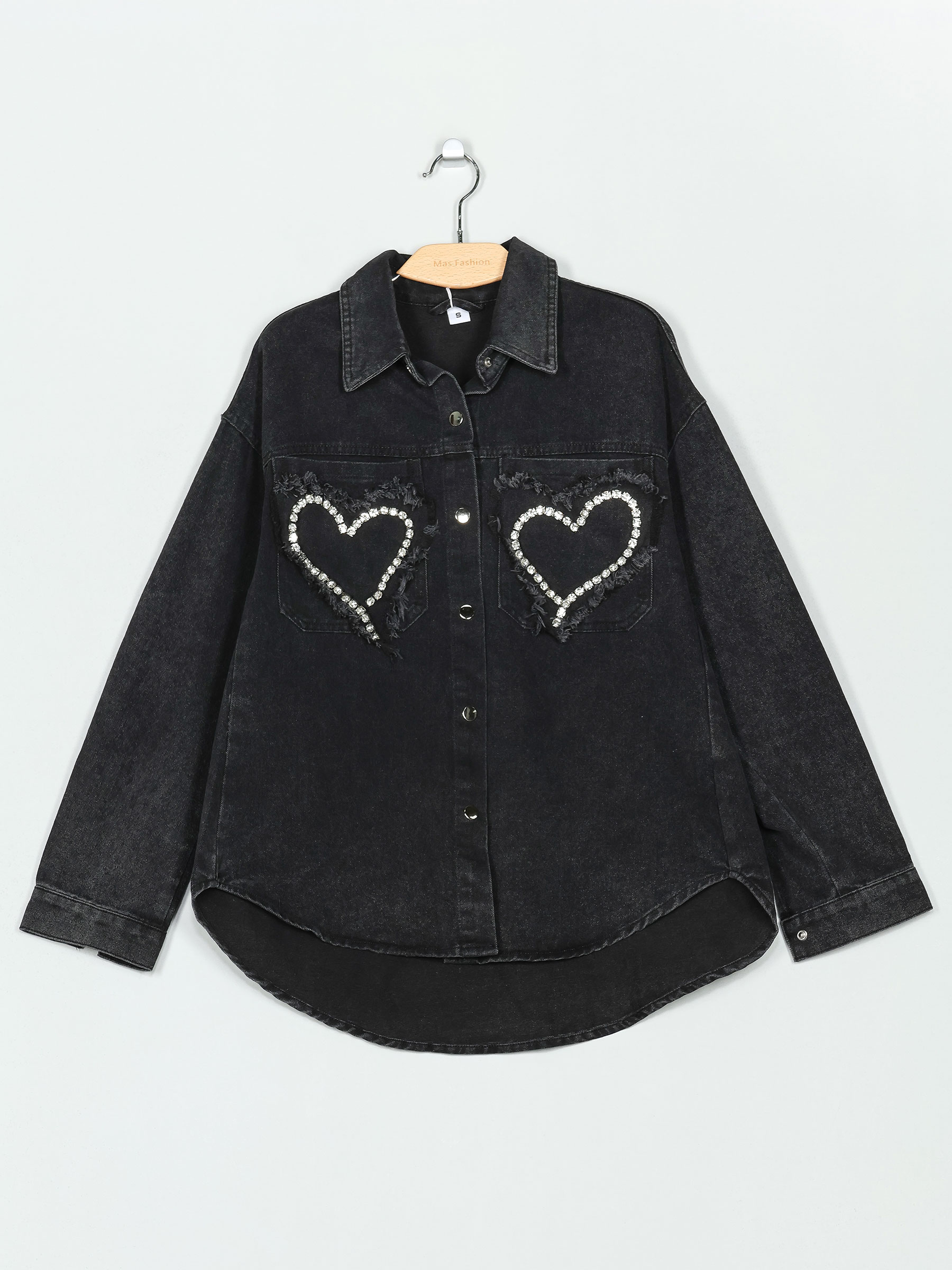 Detalles de sobrecamisa denim corazones con pedrería MF-AQ1692
