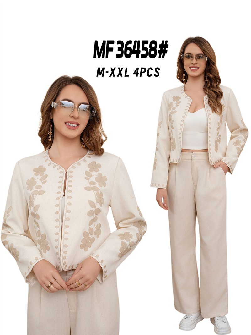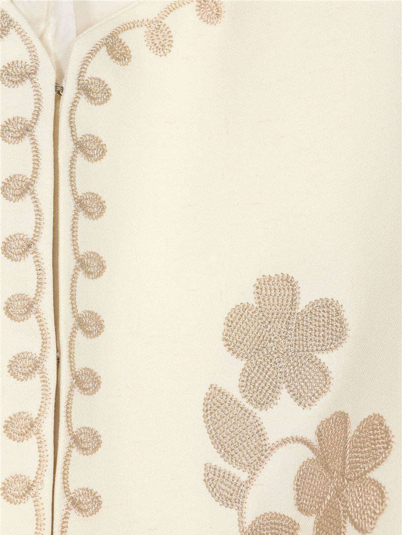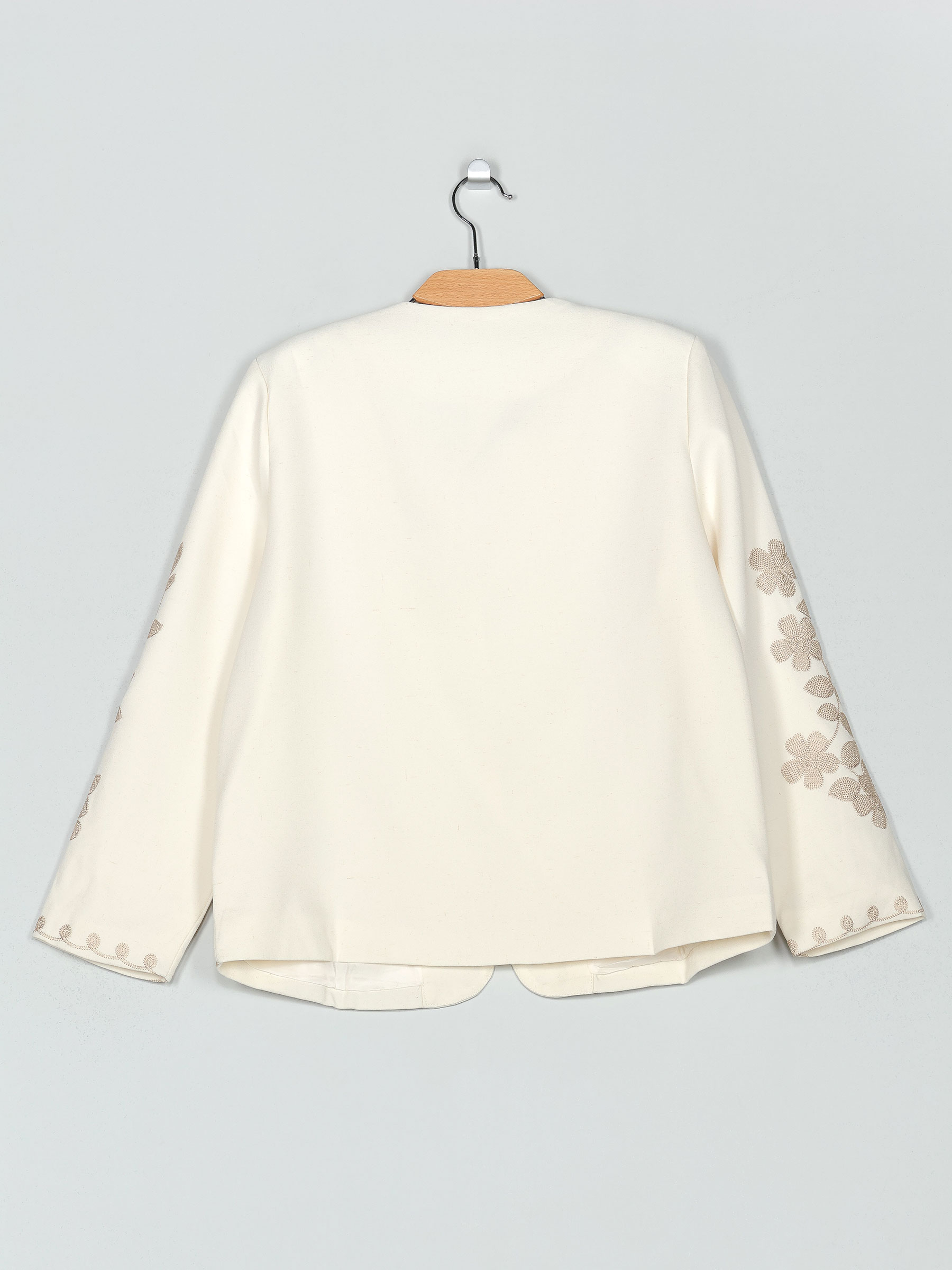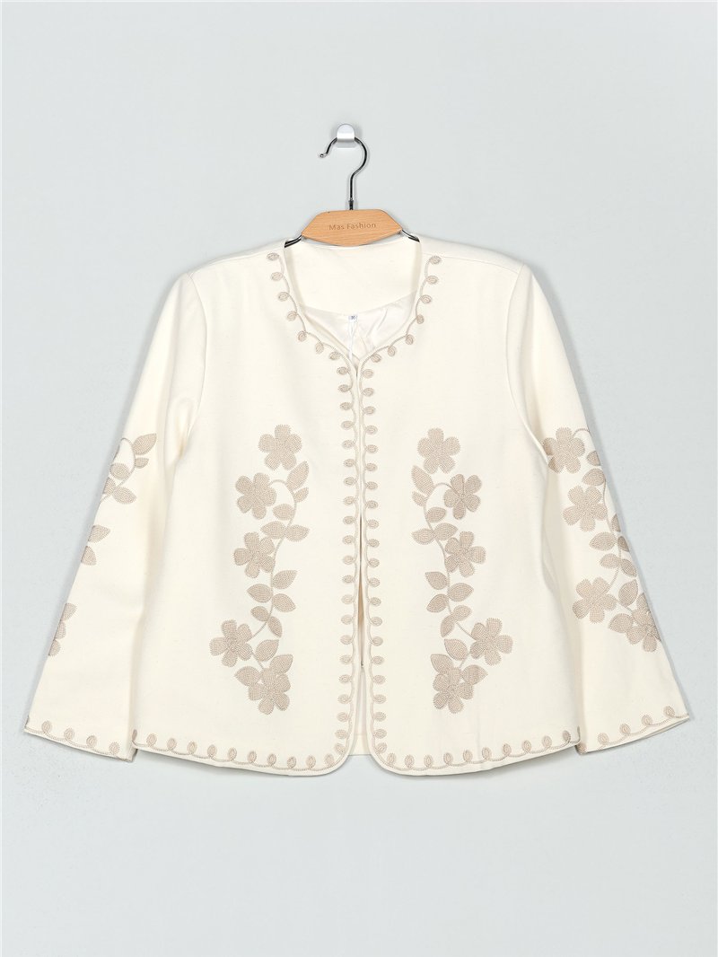 Detalles de chaqueta lino bordado floral MF-MF36458