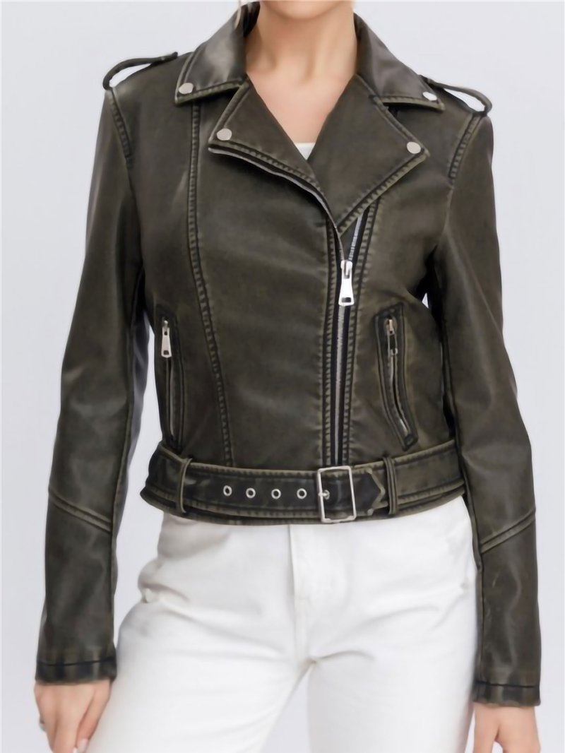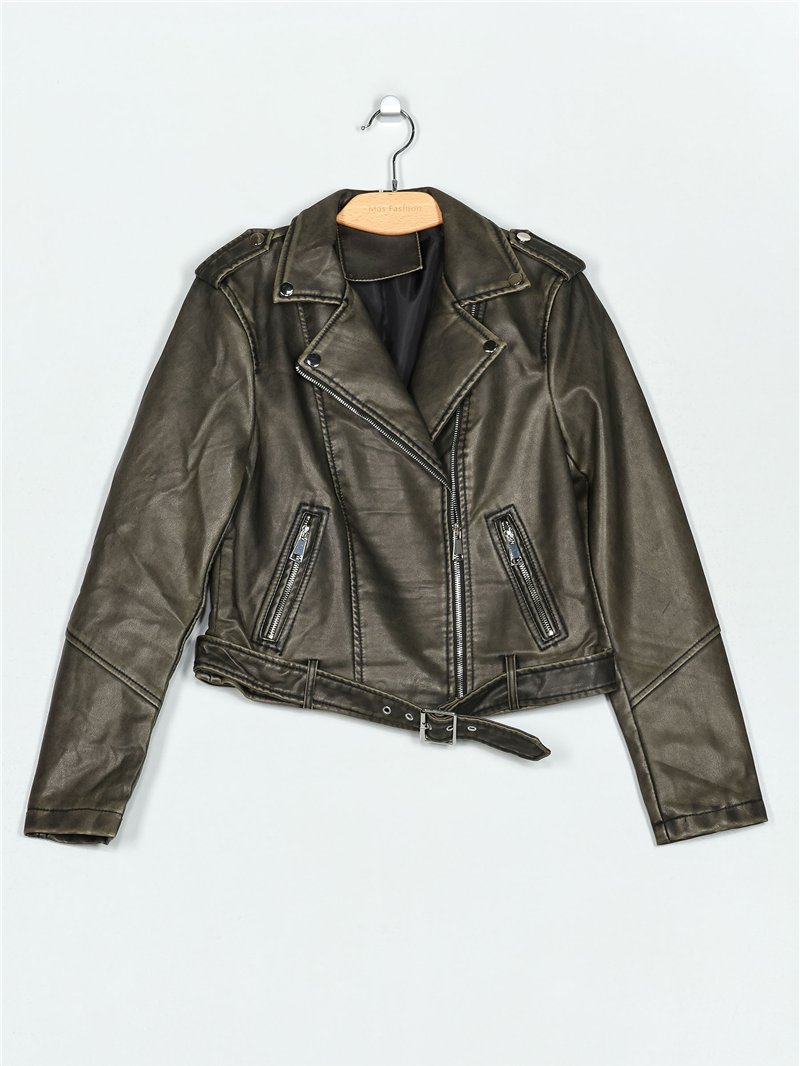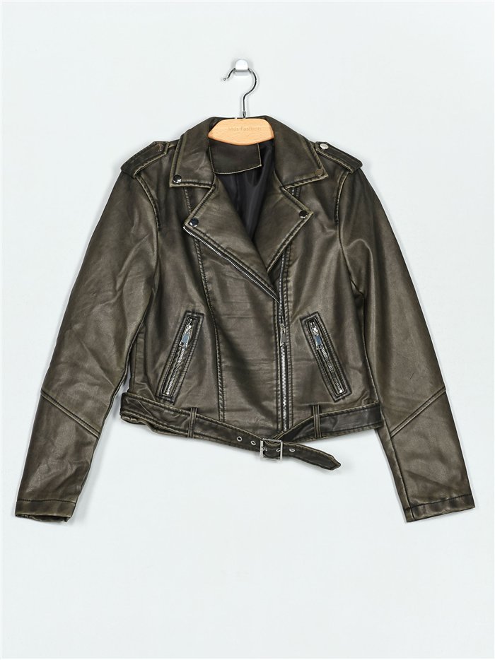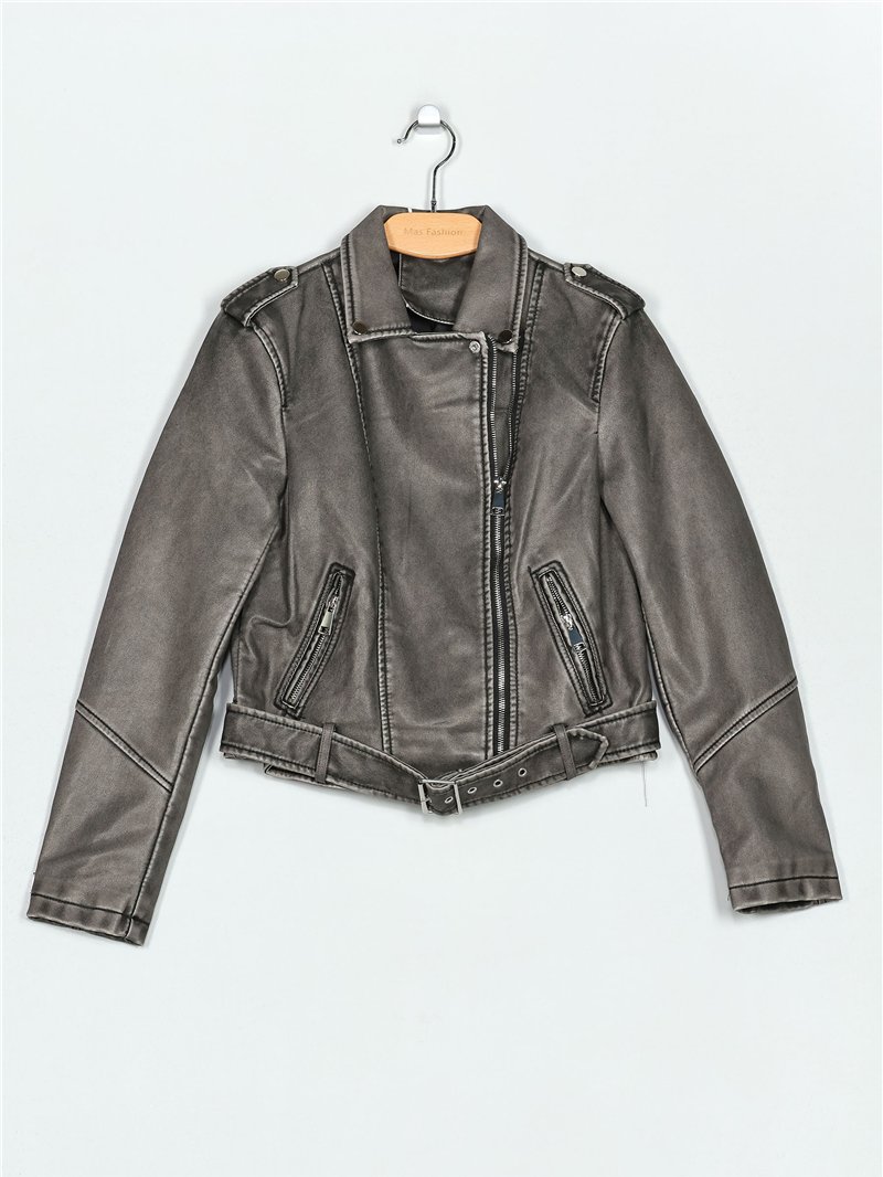 Detalles de chaqueta biker efecto piel MF-MF6704