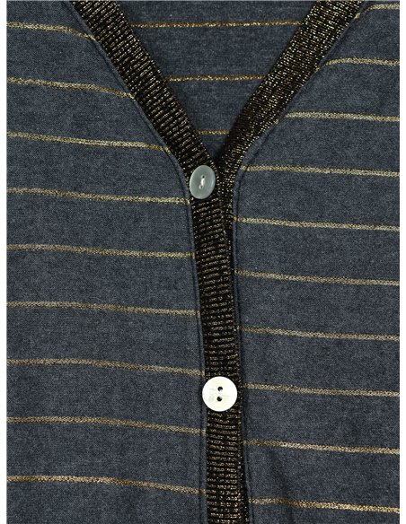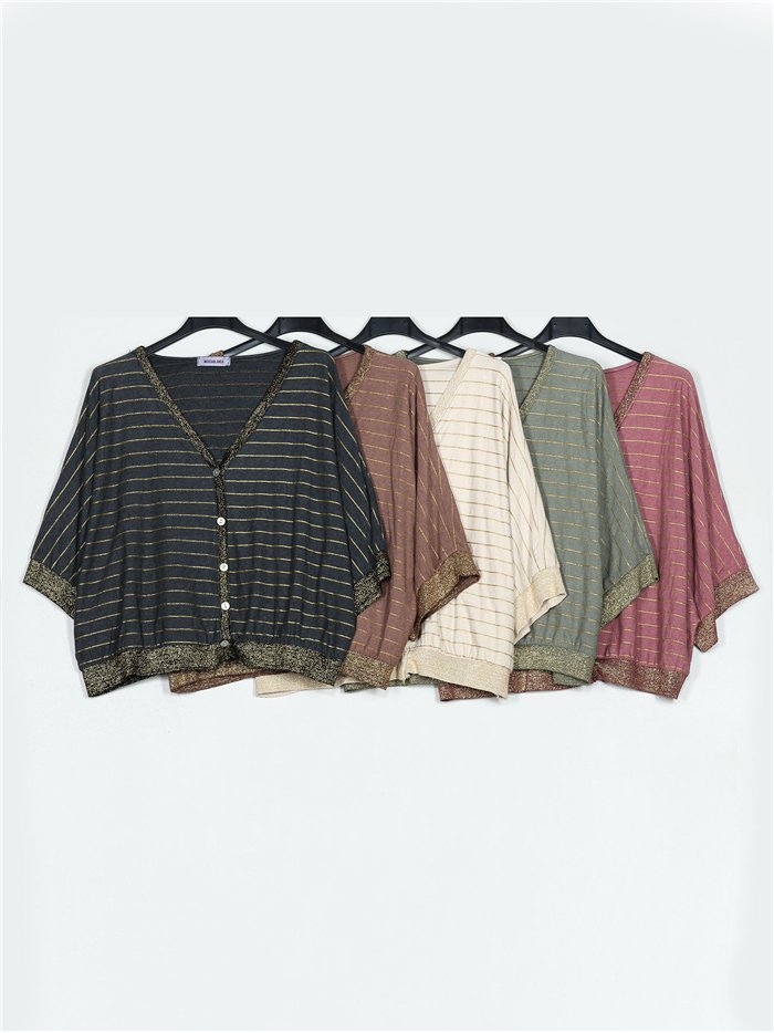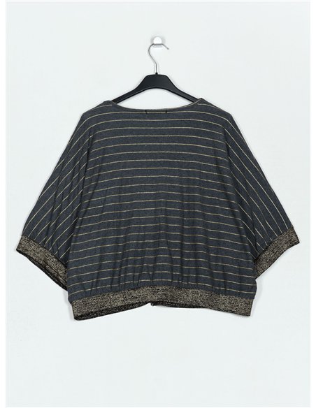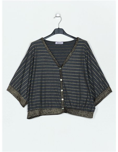 Chaqueta amplia rayas. Tejido elástico. Cuello pico. Manga corta. Cierre mediante botones.