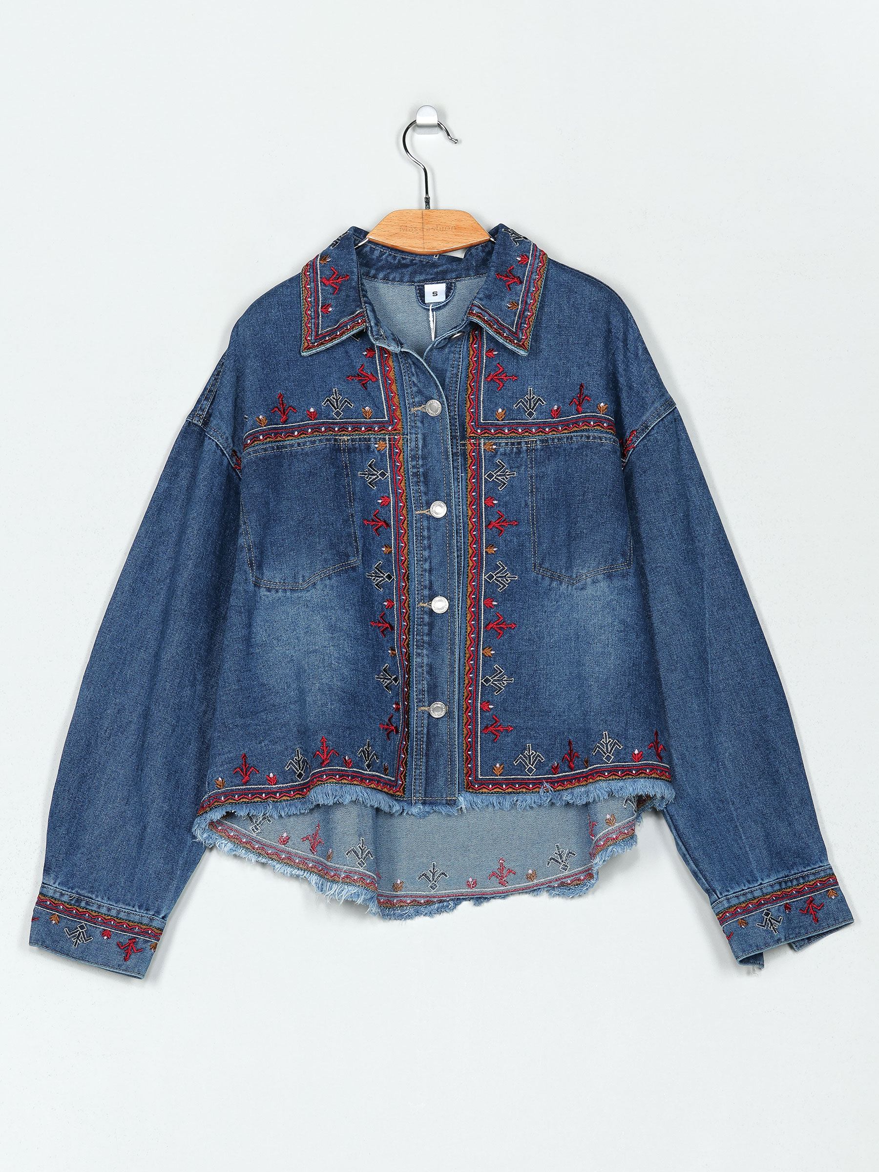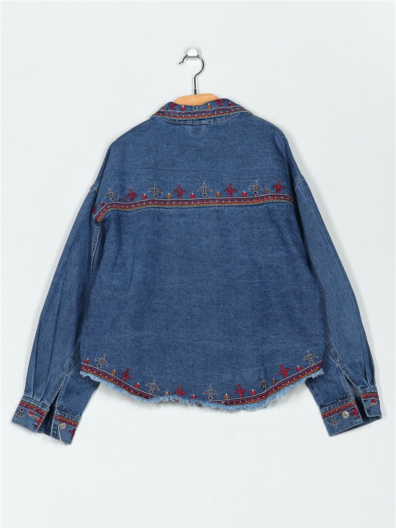 Detalles de sobrecamisa amplia denim bordada MF-AQ1698