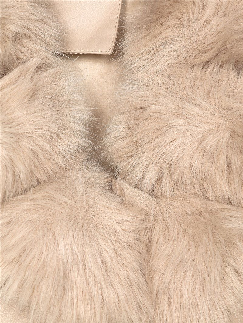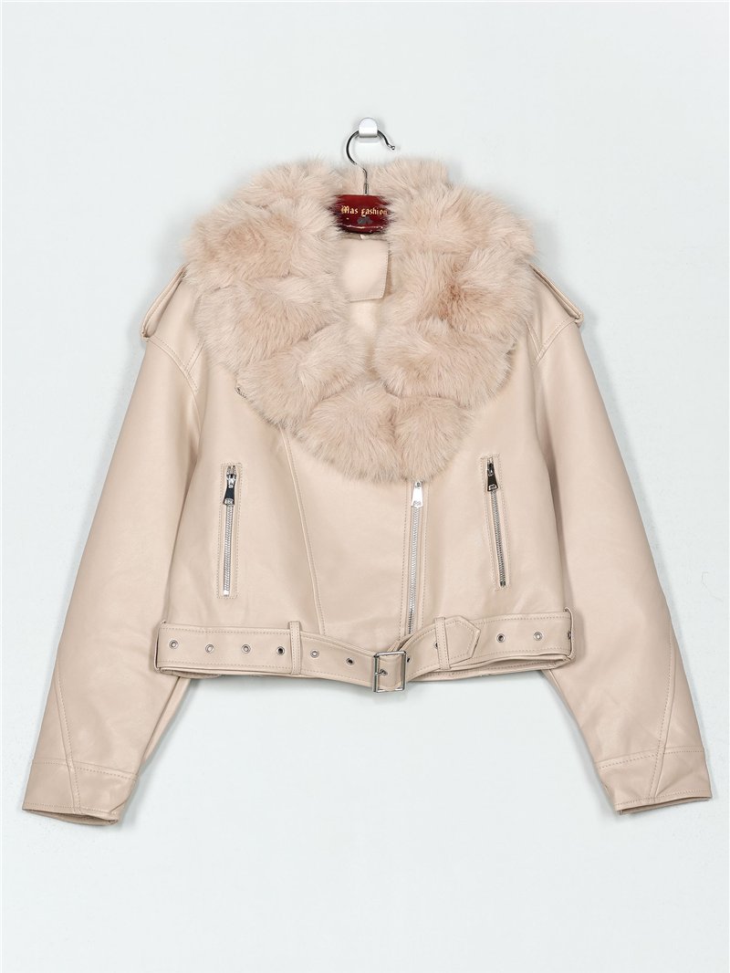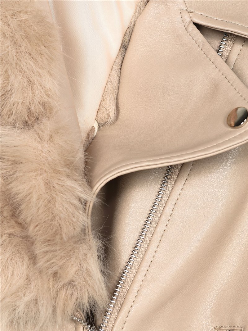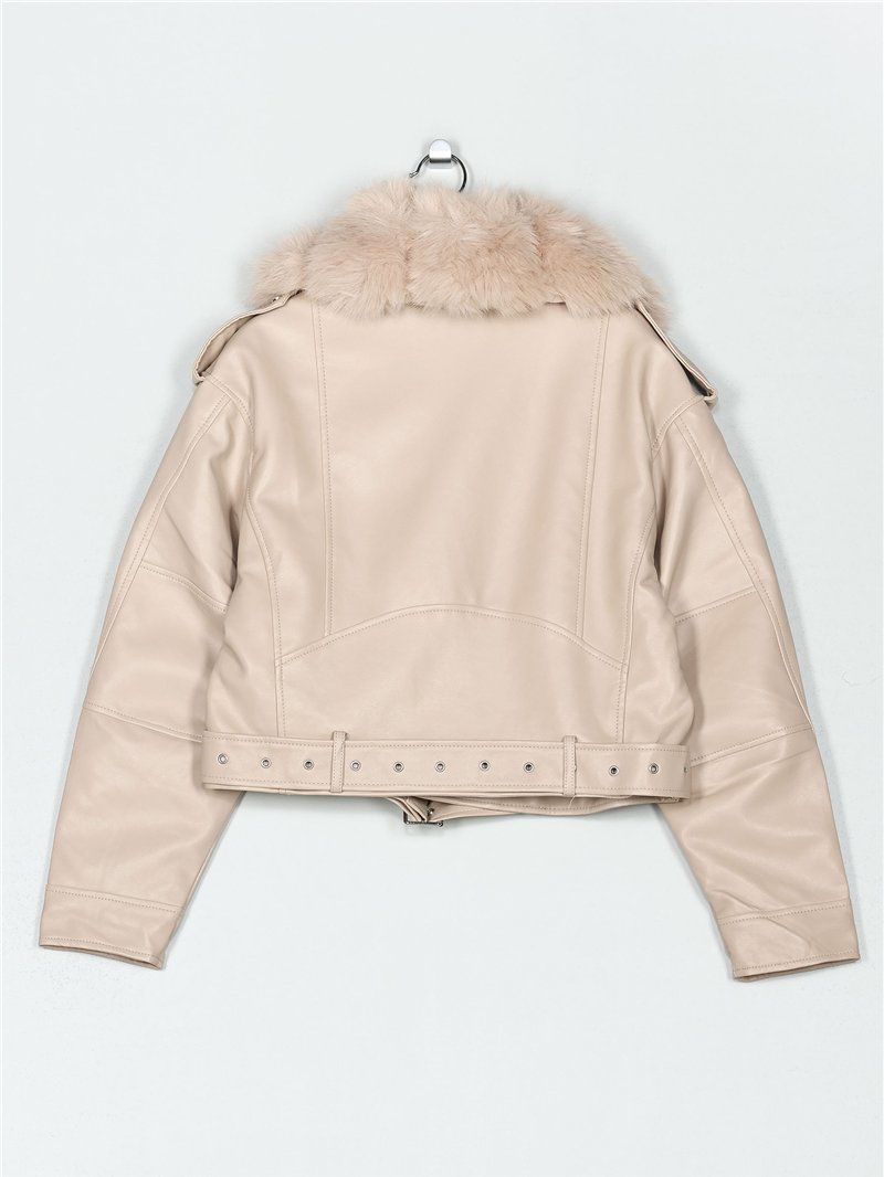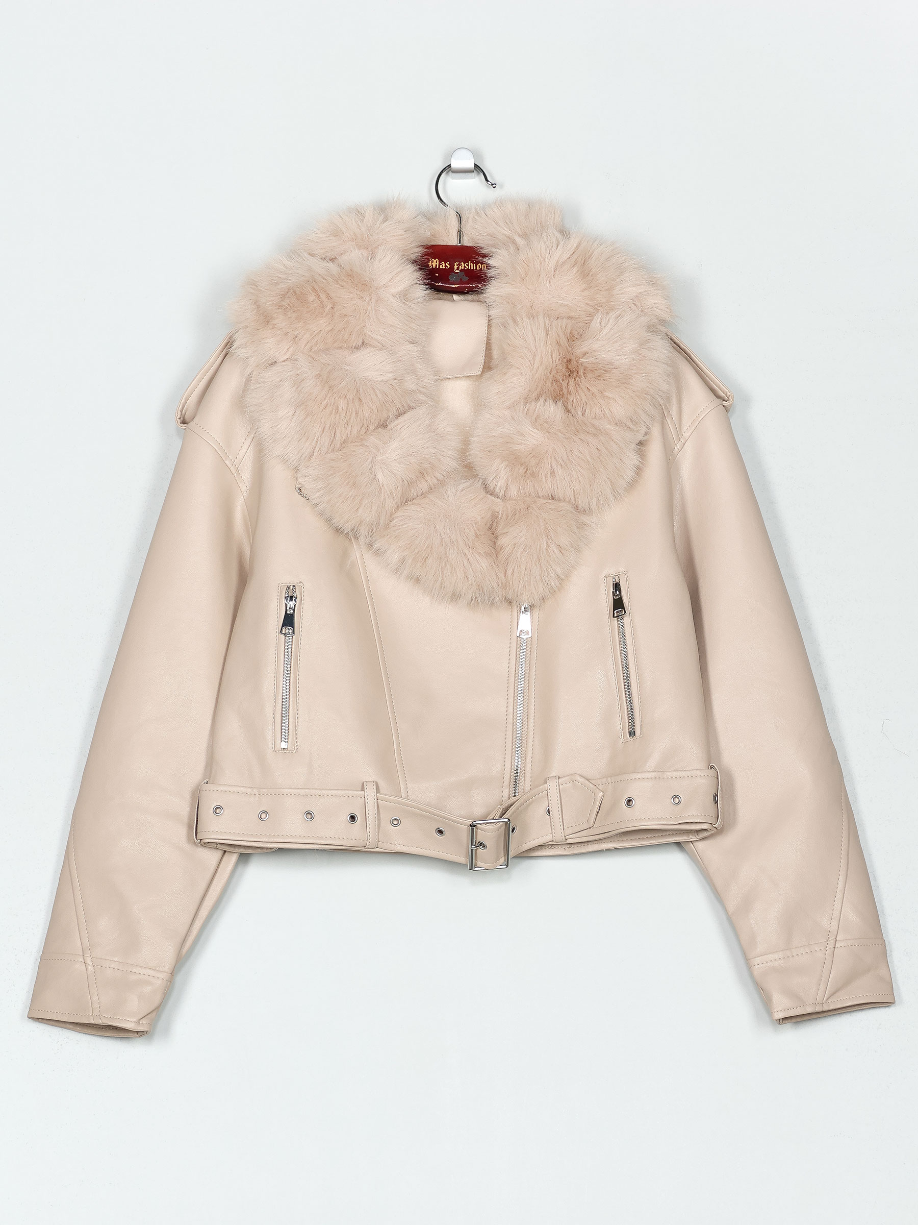 Detalles de chaqueta biker efecto piel con cuello de pelo MF-MF6735-2-APRICOT