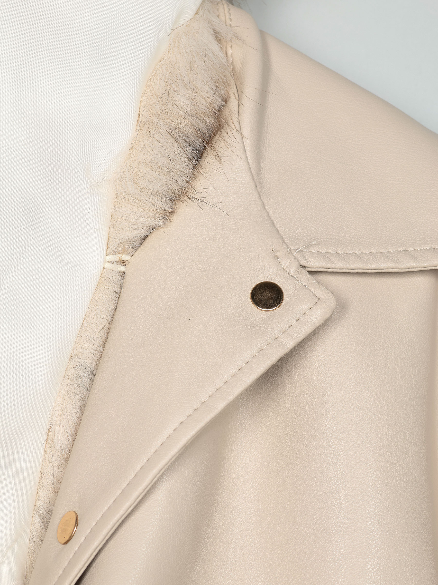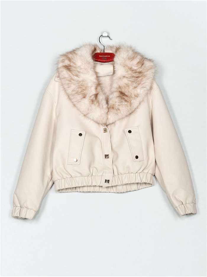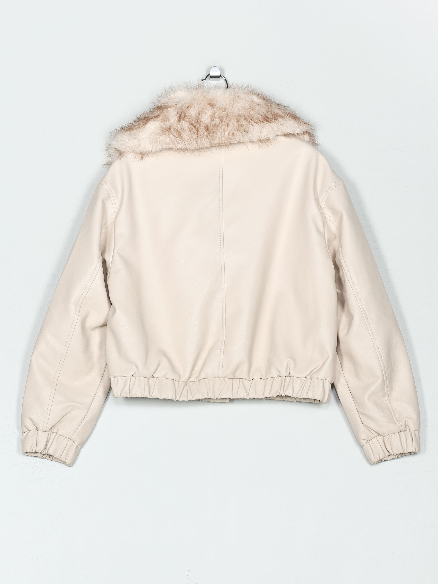 Detalles de bomber efecto piel con cuello de pelo MF-MF6743-2-BEIGE