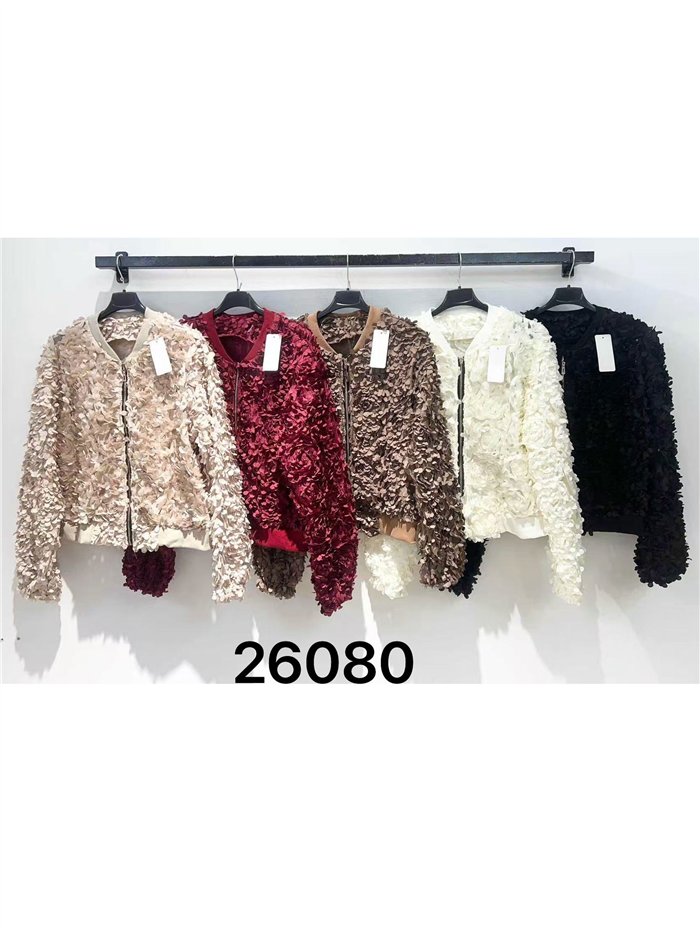 Detalles de bomber fiesta de tul flores con relieve SP-26080