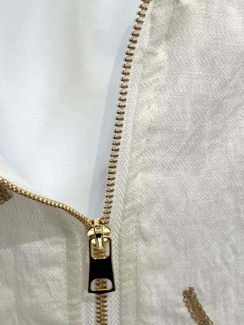 Chaqueta bomber. Bordado de hojas. Forro interior. Cierre con cremallera. Puños y bajo elásticos.