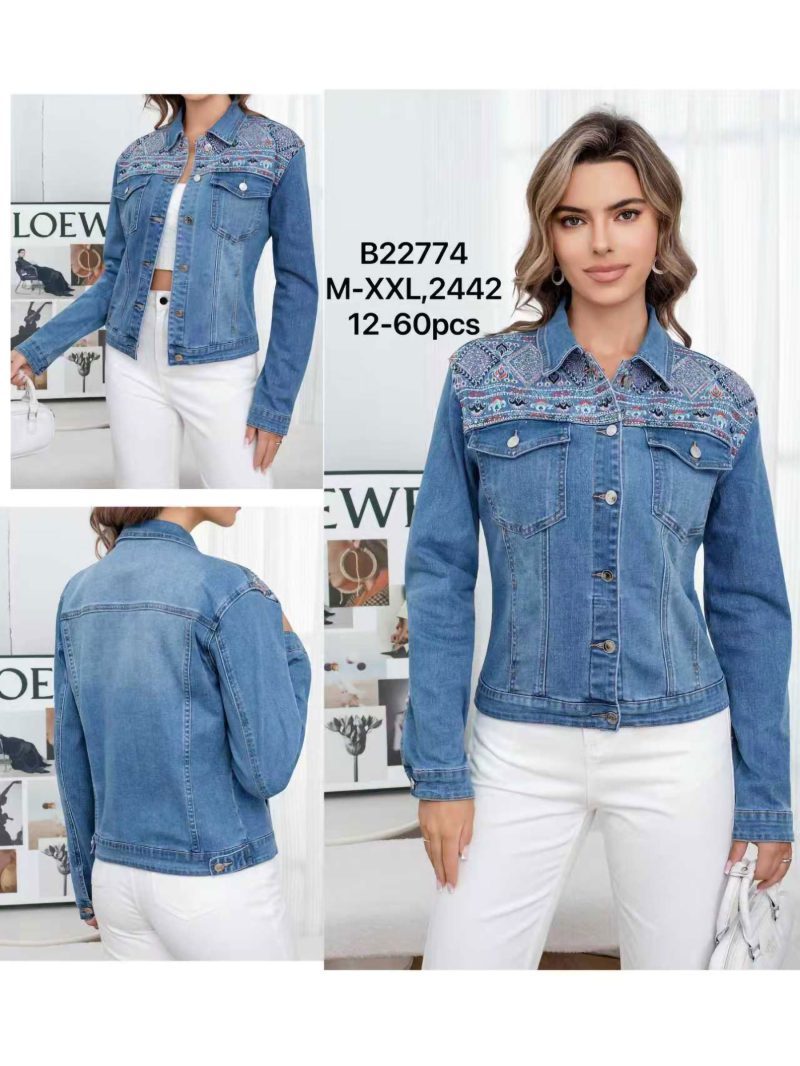 Chaqueta denim bordada boho