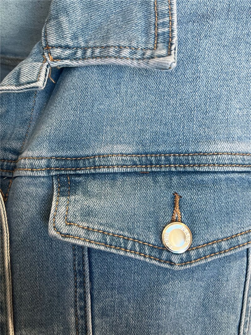 Chaqueta vaquera. Cuello solapa. Manga larga. Bolsillos de pecho con solapa. Cierre frontal mediante botones metálicos.