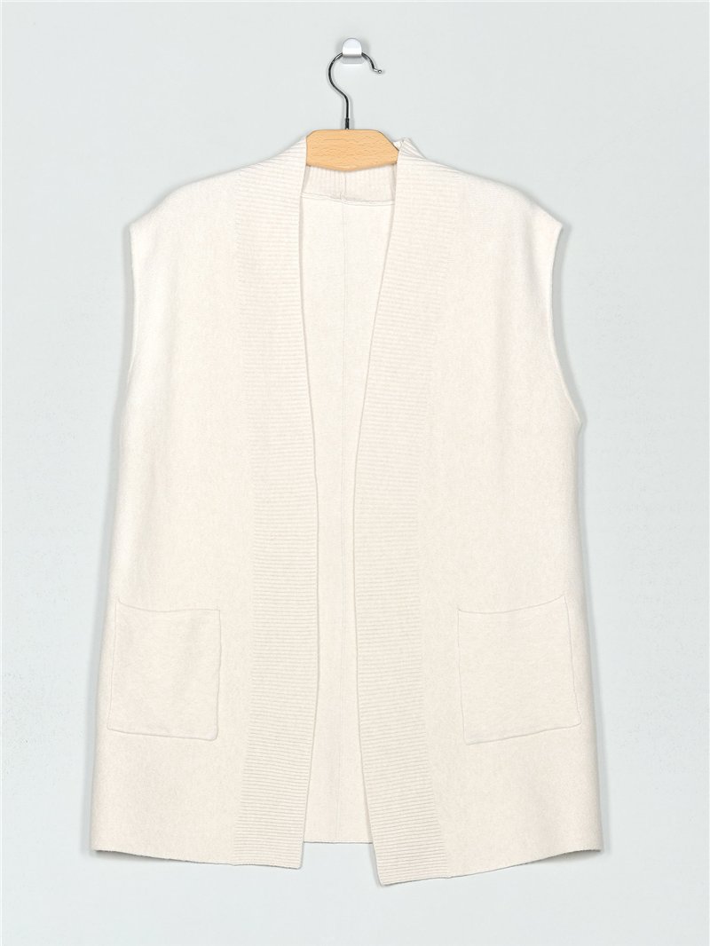 Chaleco amplio de punto. Tacto suave. Bolsillos delanteros de plastrón.