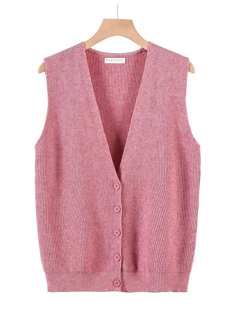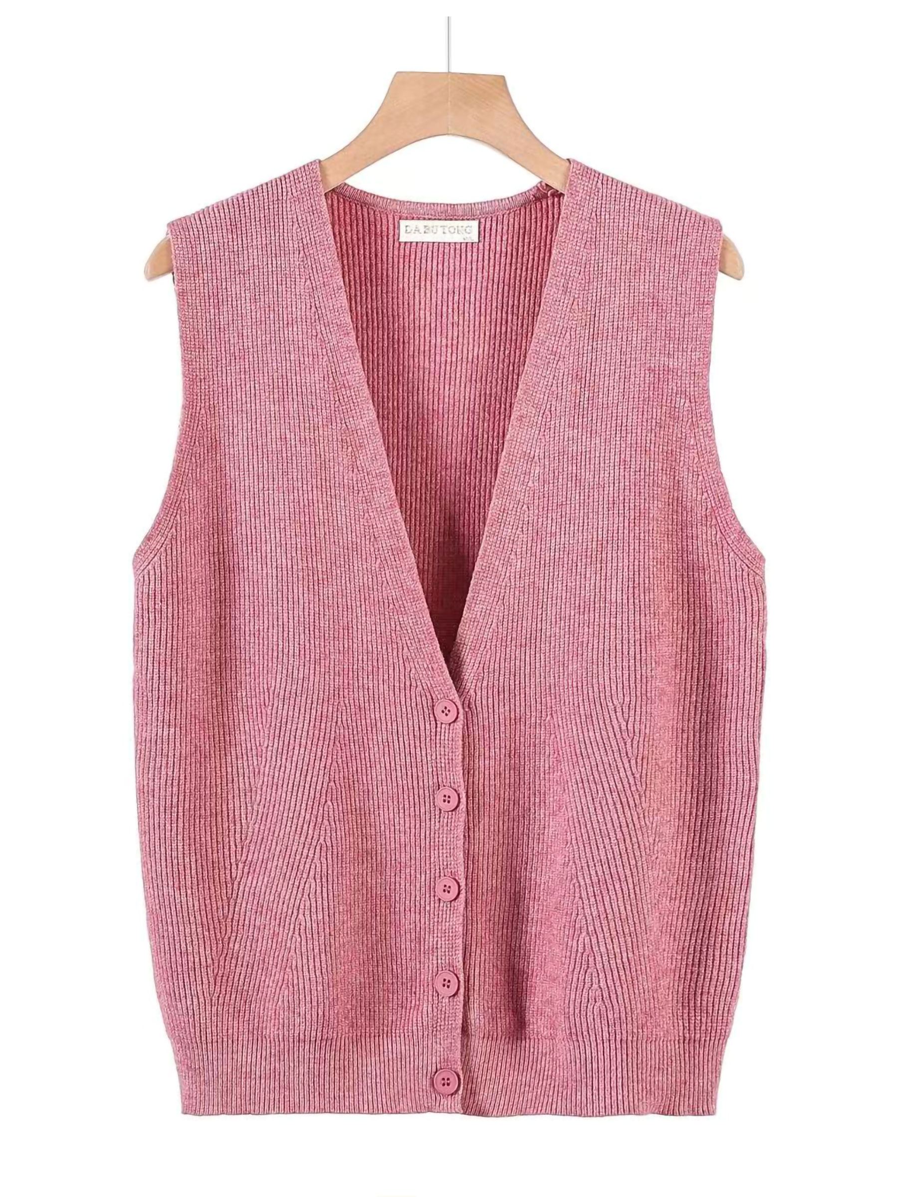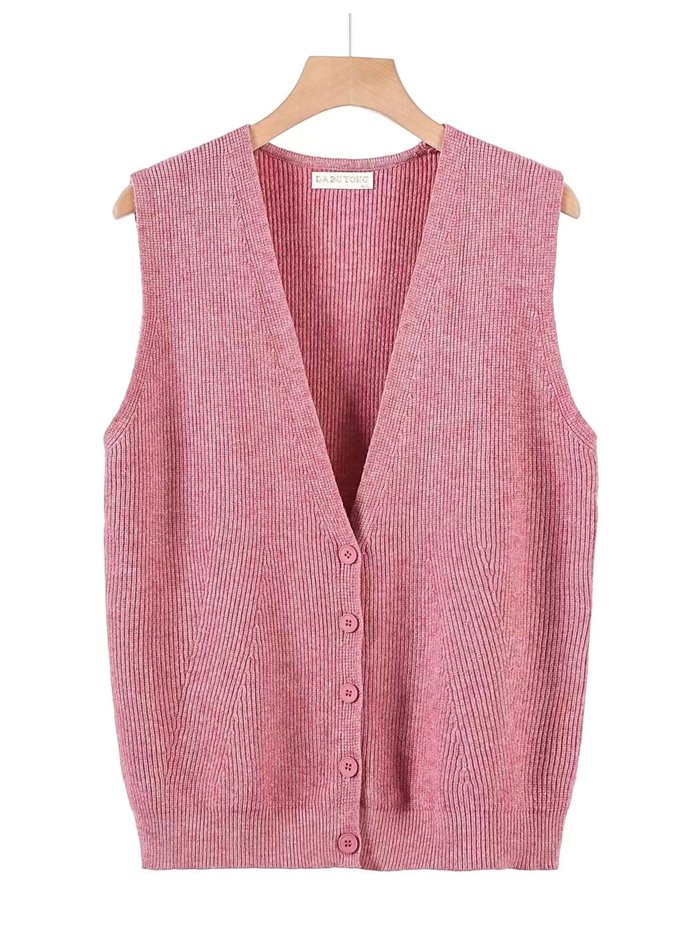 Chaleco canalé. Talla grande. Punto cálido. Cuello pico. Cierre frontal con botones.