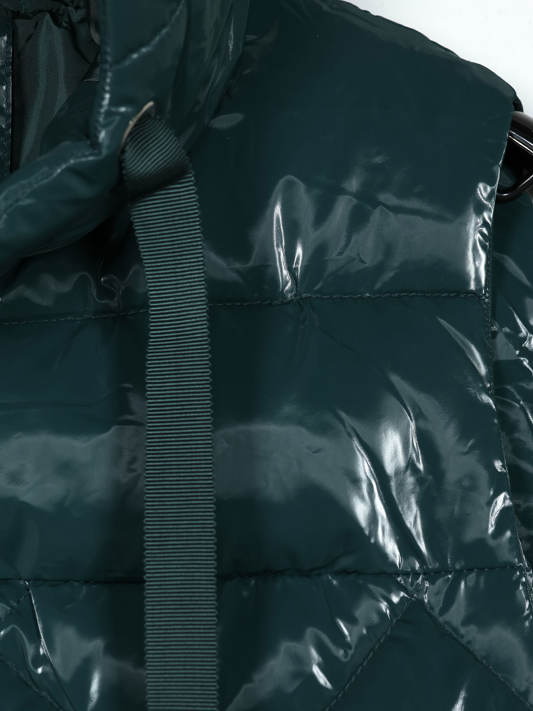 Detalles de chaleco largo acharolado capucha water repellent MF-AF-83172-86-BLUISH-GREEN