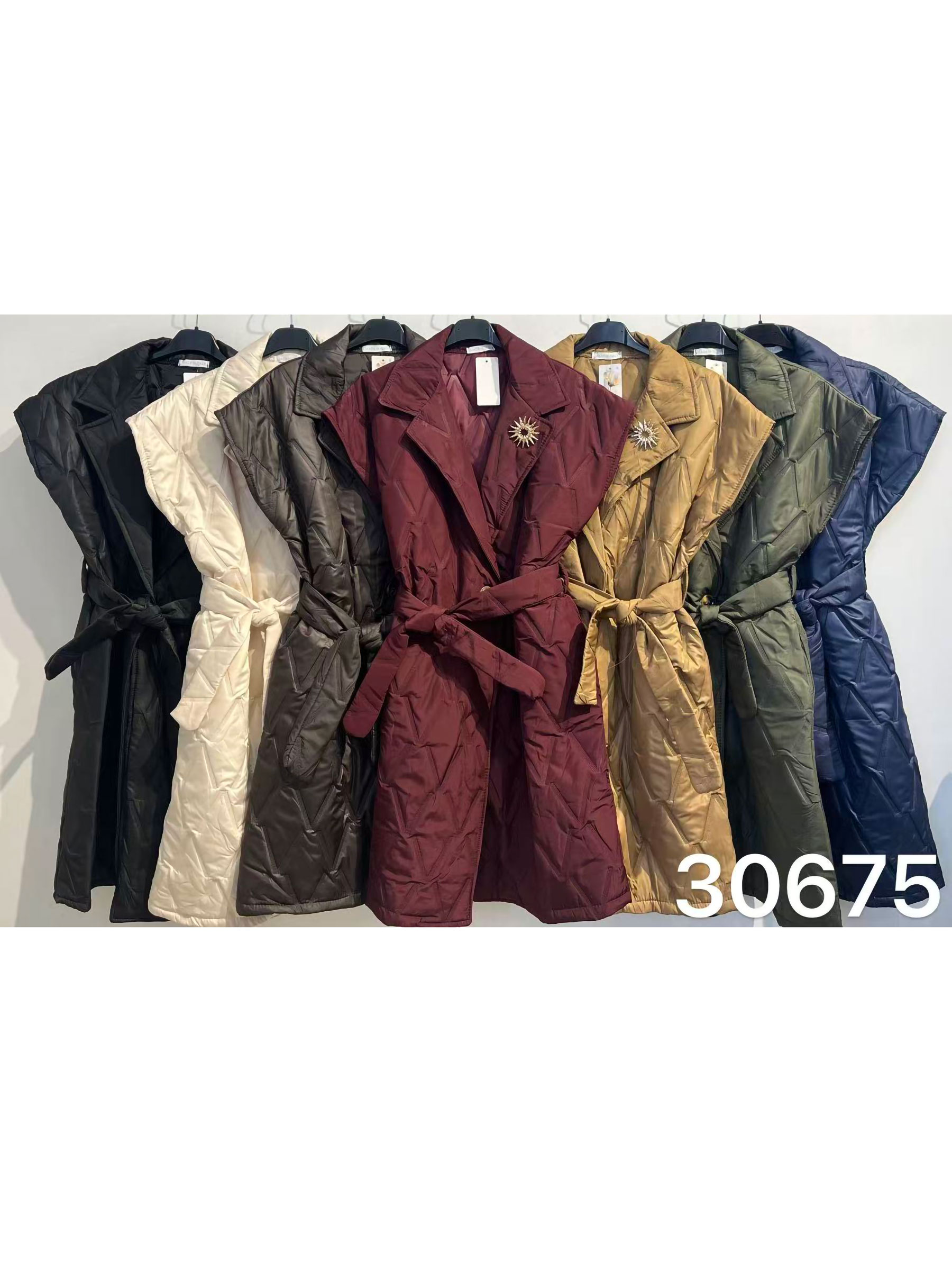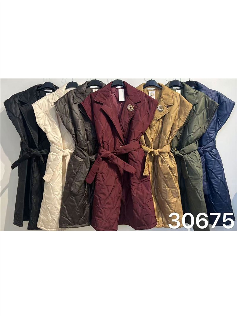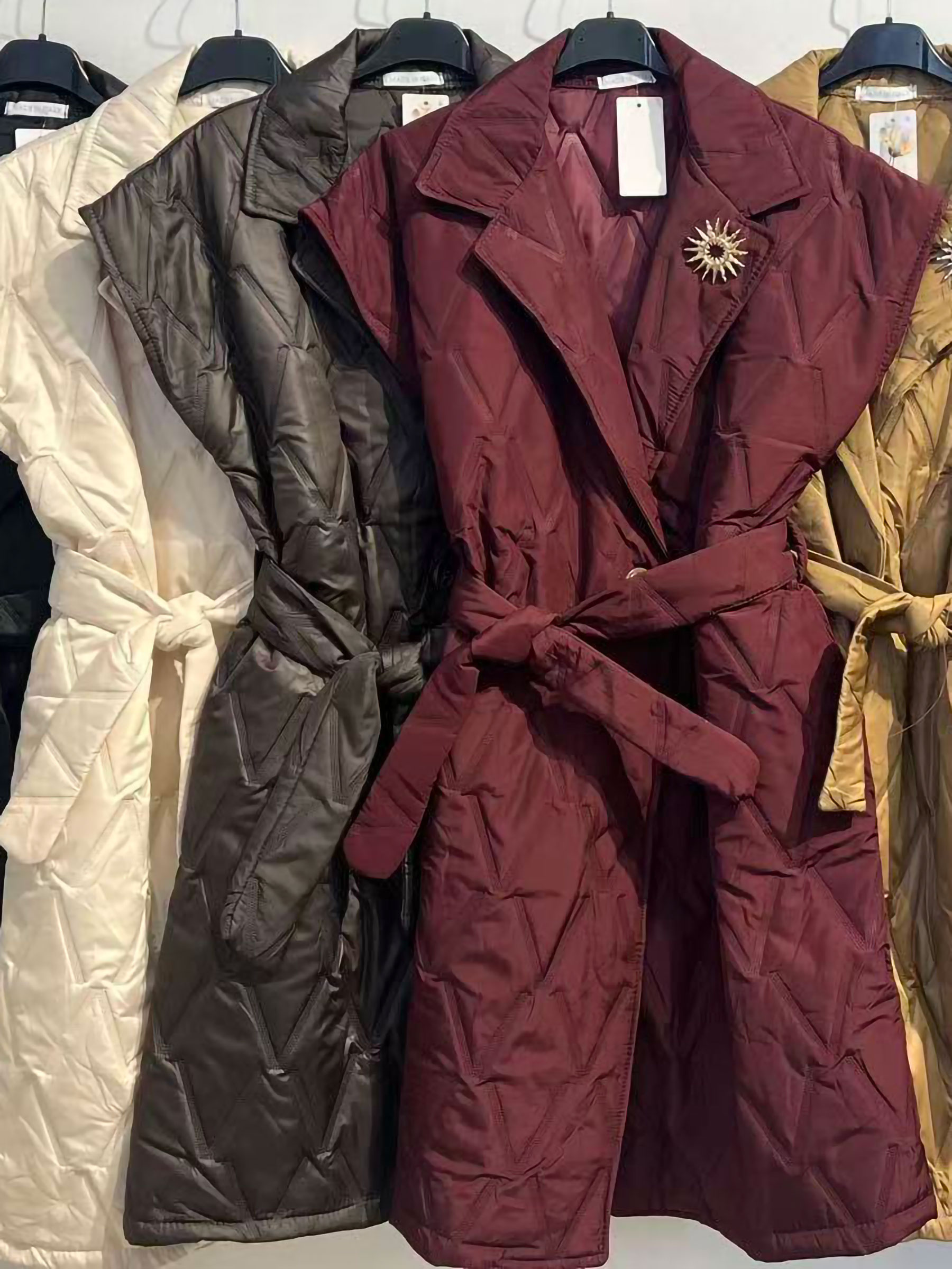 Detalles de chaleco acolchado largo con cinturón ZD-30675