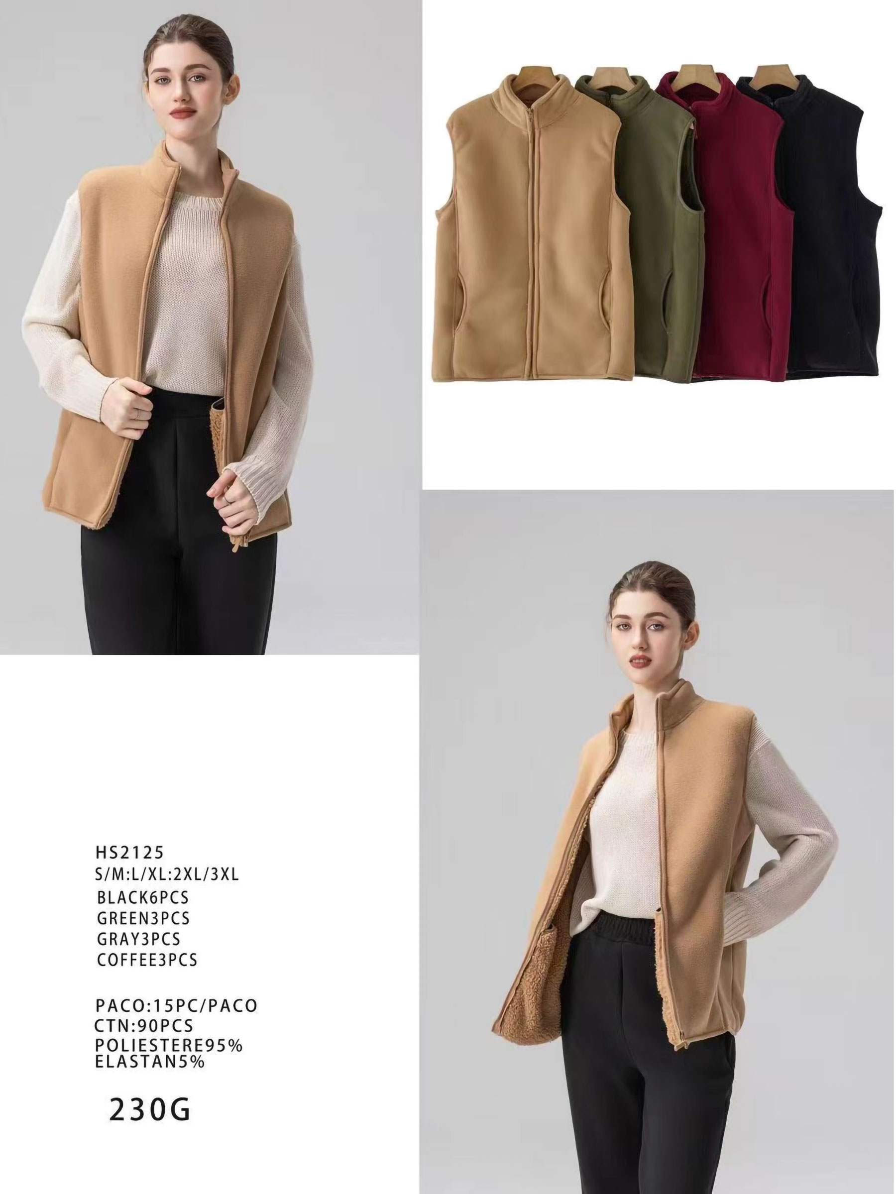 Detalles de chaleco polar borrego con cremallera LS-HS2125