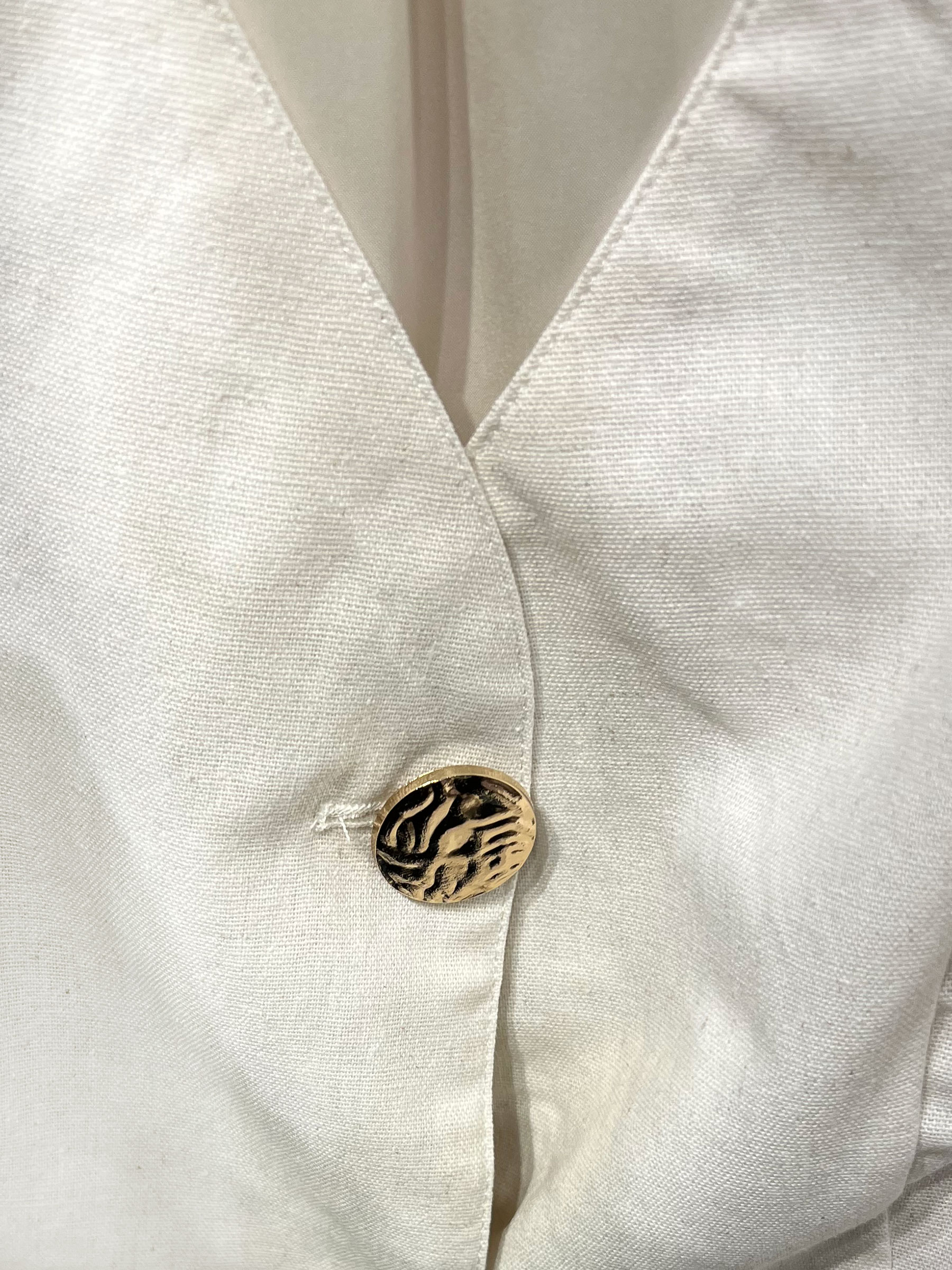 Conjunto de efecto lino: chaleco botones joya y pantalón