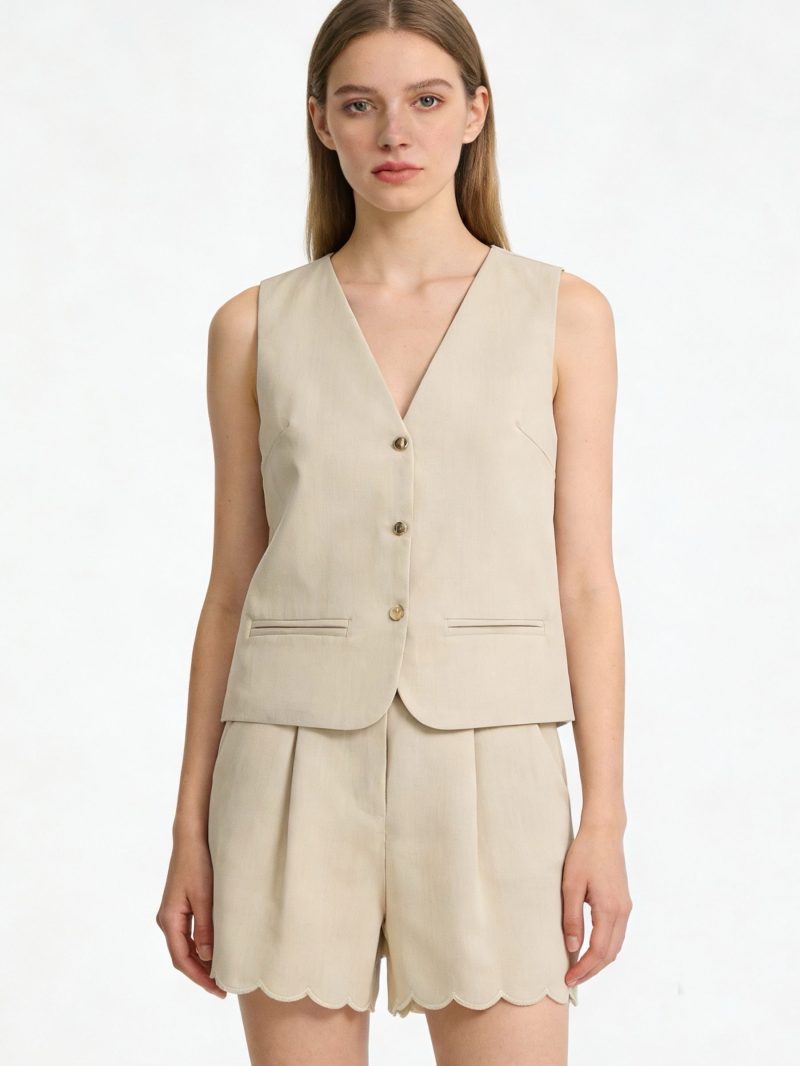 Conjunto de chaleco y short festoneado
