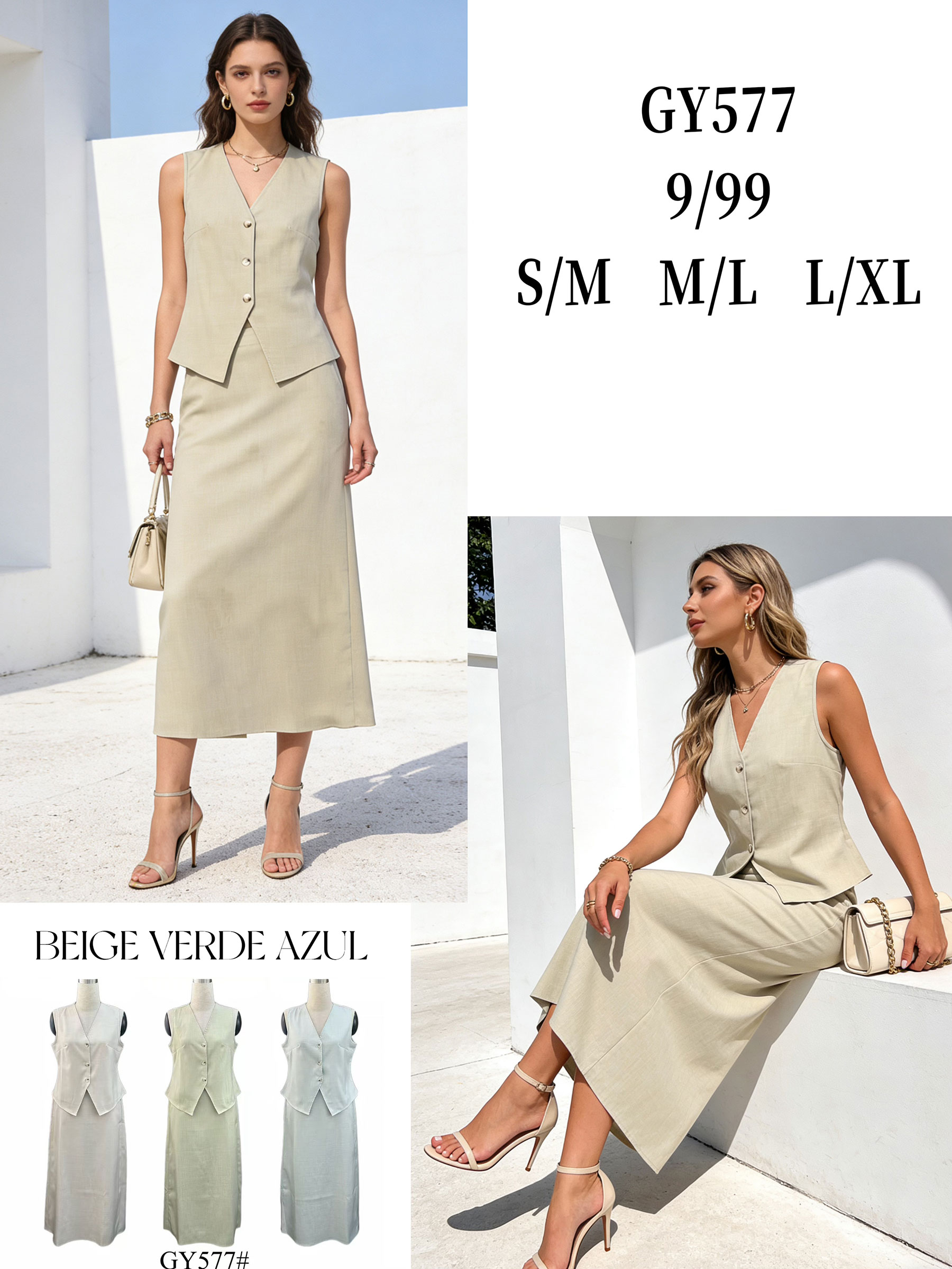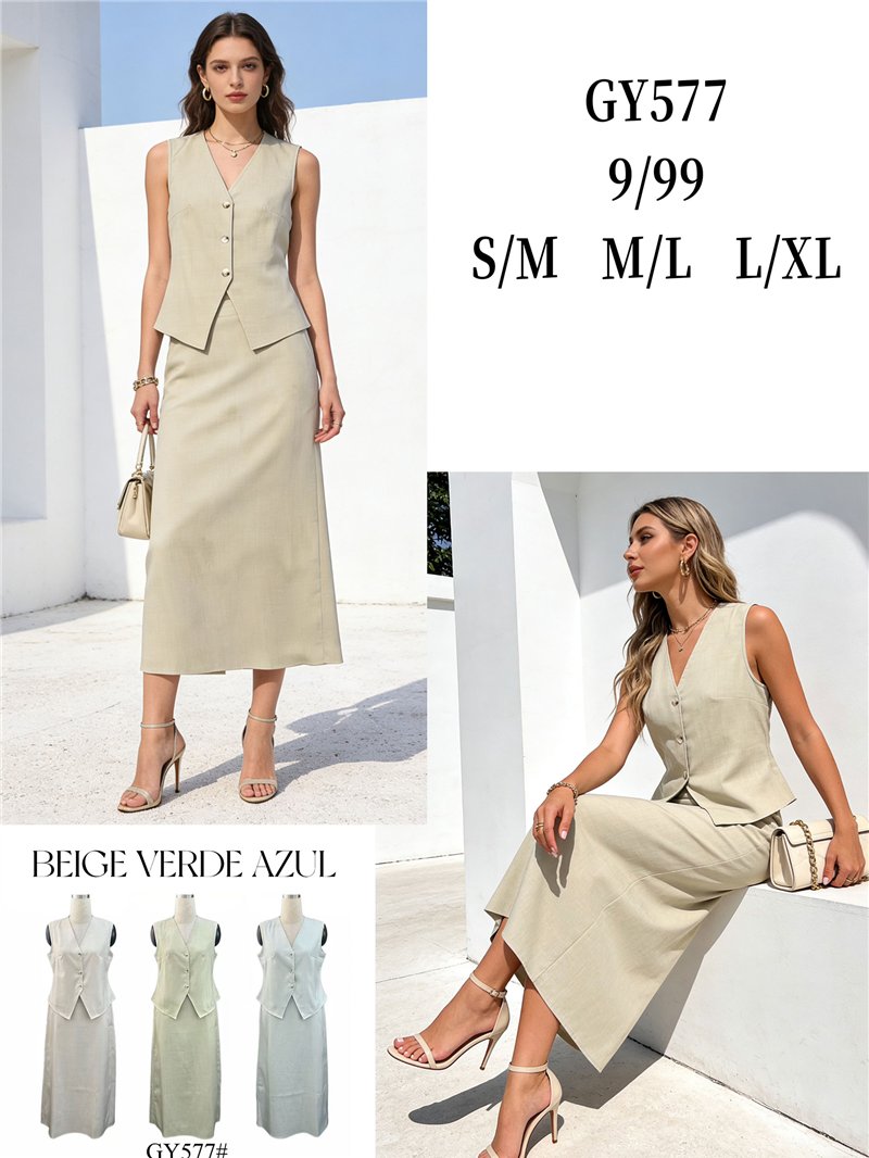 Conjunto de chaleco y falda midi