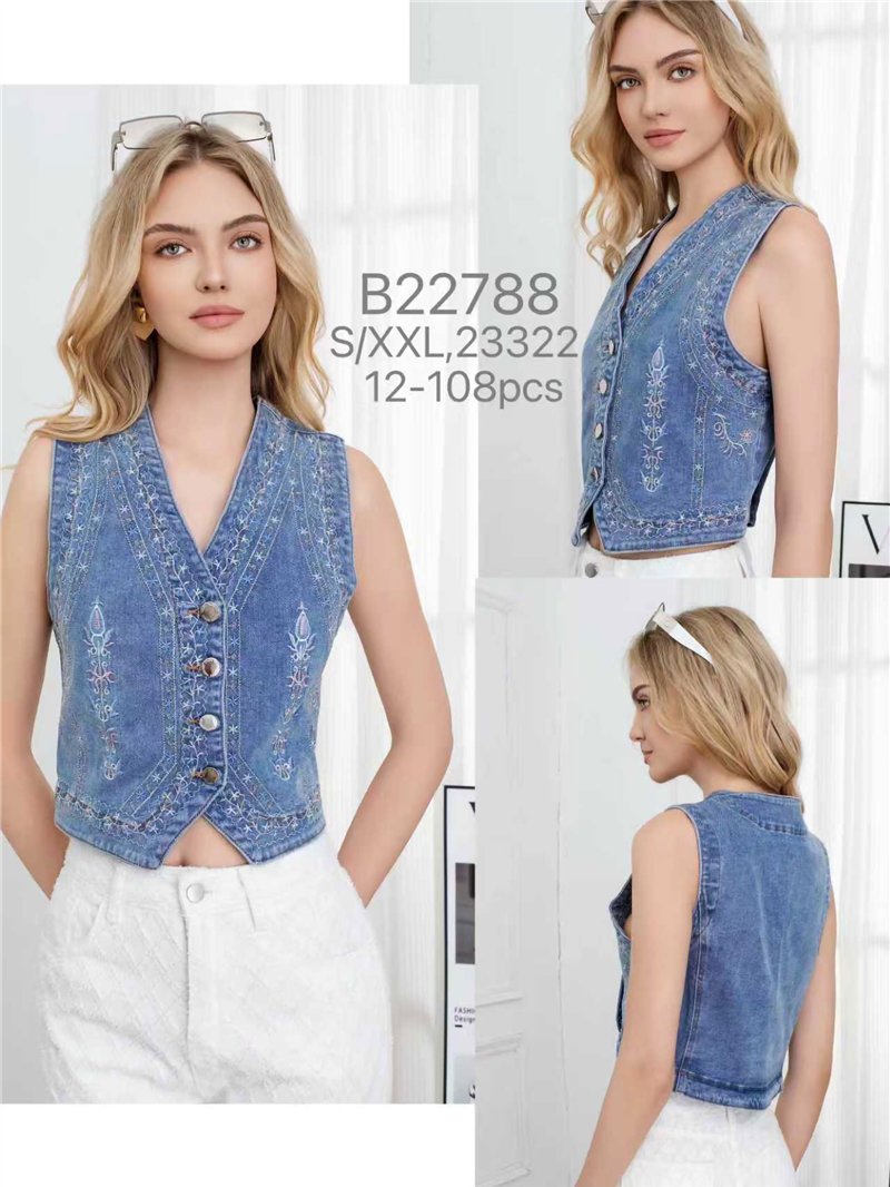 Chaleco denim bordado con botones
