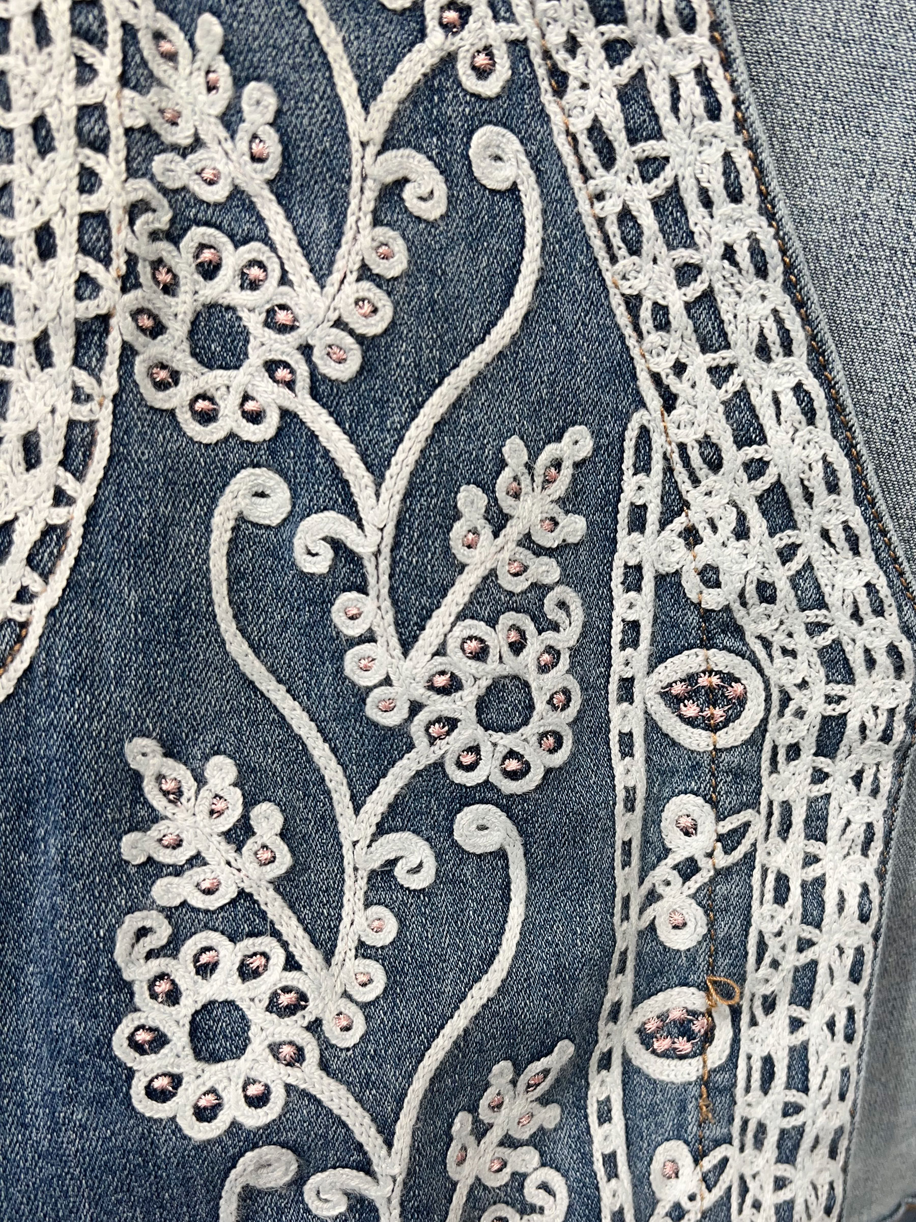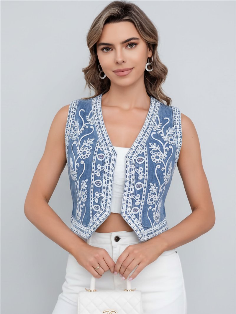 Chaleco vaquero. Bordado en contraste. Escote pico.