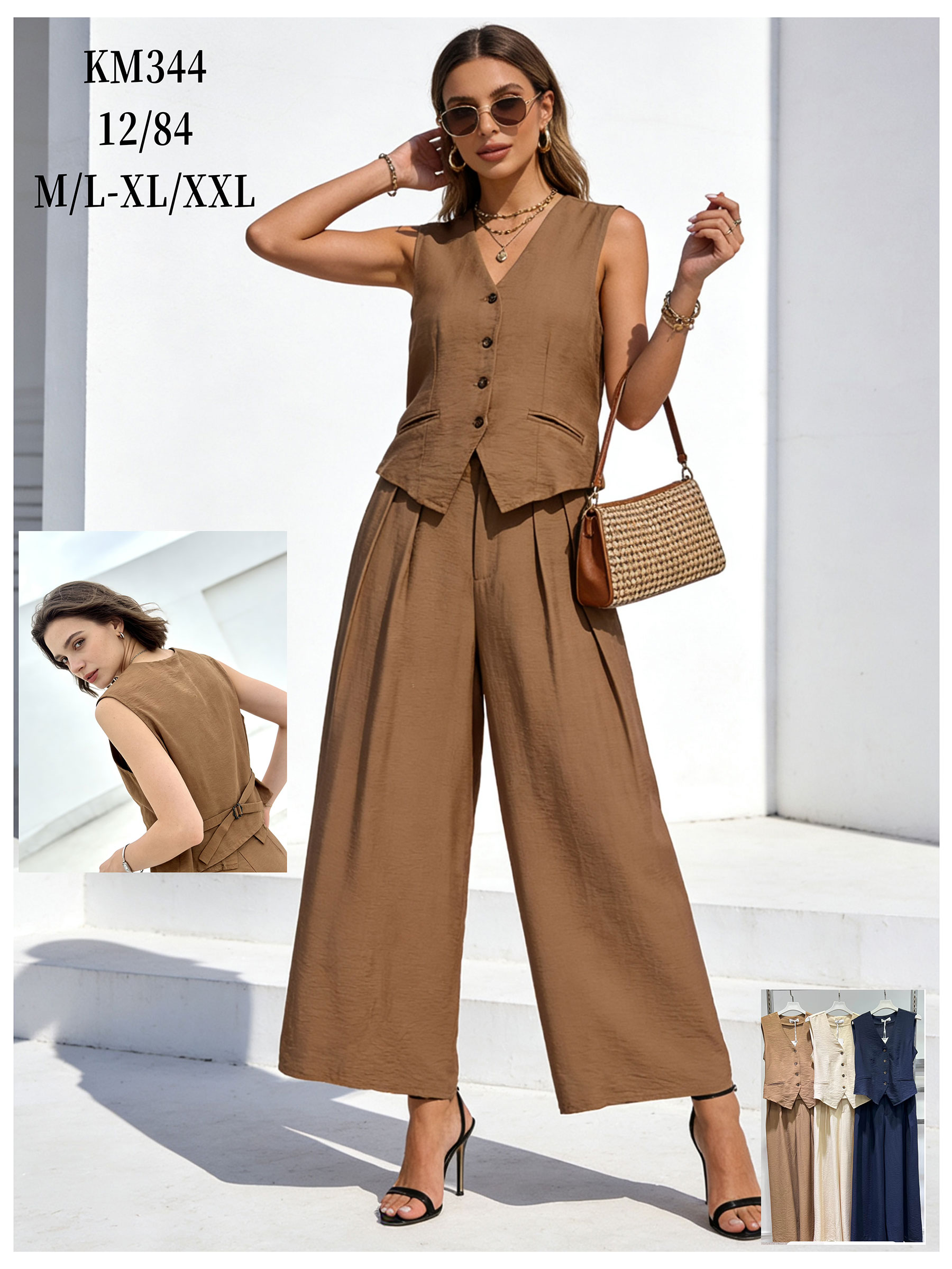 Conjunto liso de chaleco y pantalón palazzo