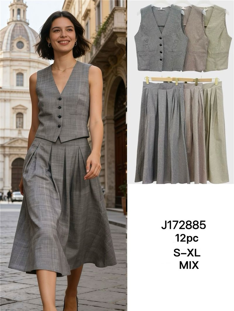 Conjunto chaleco y falda midi evasé