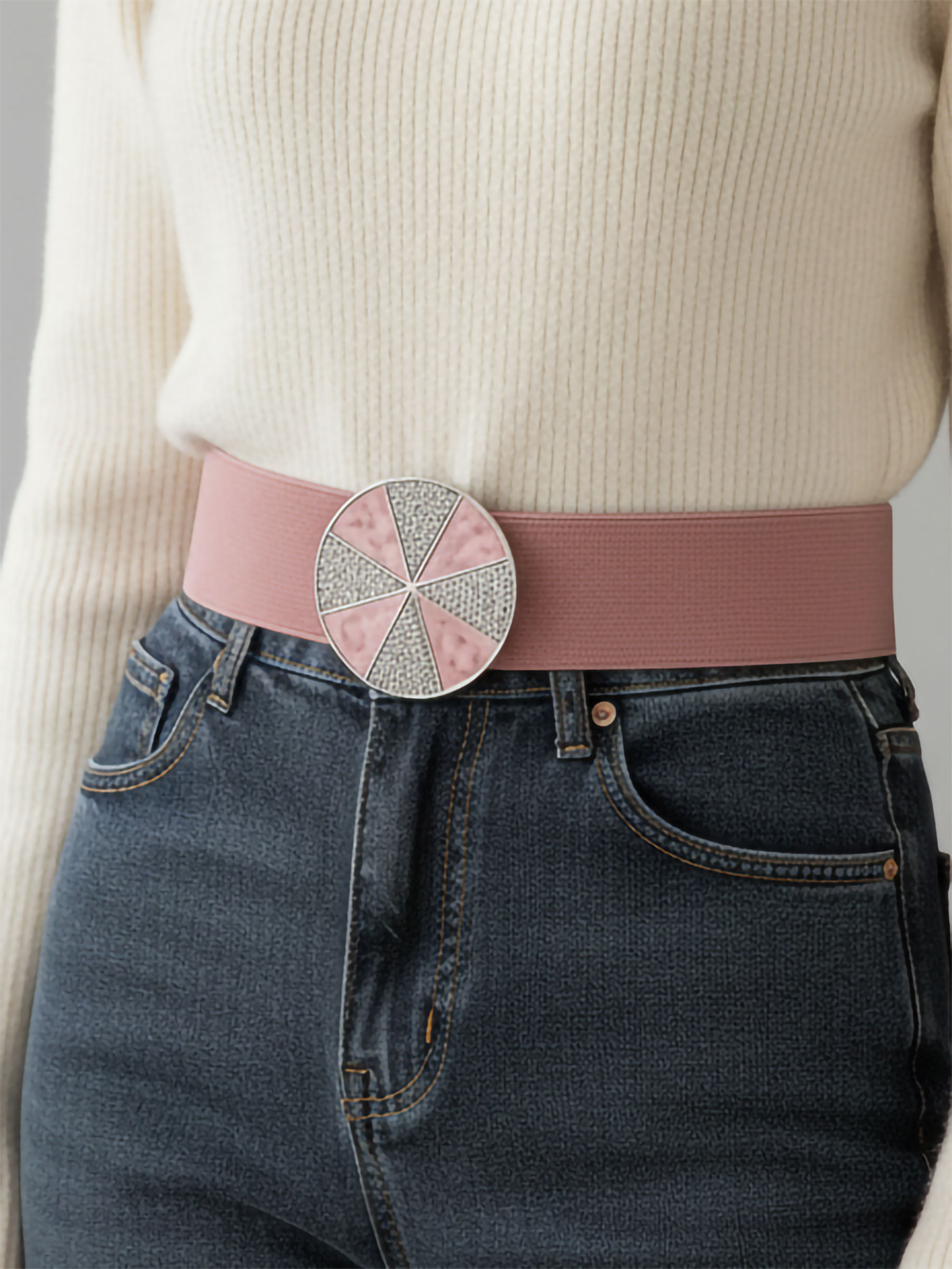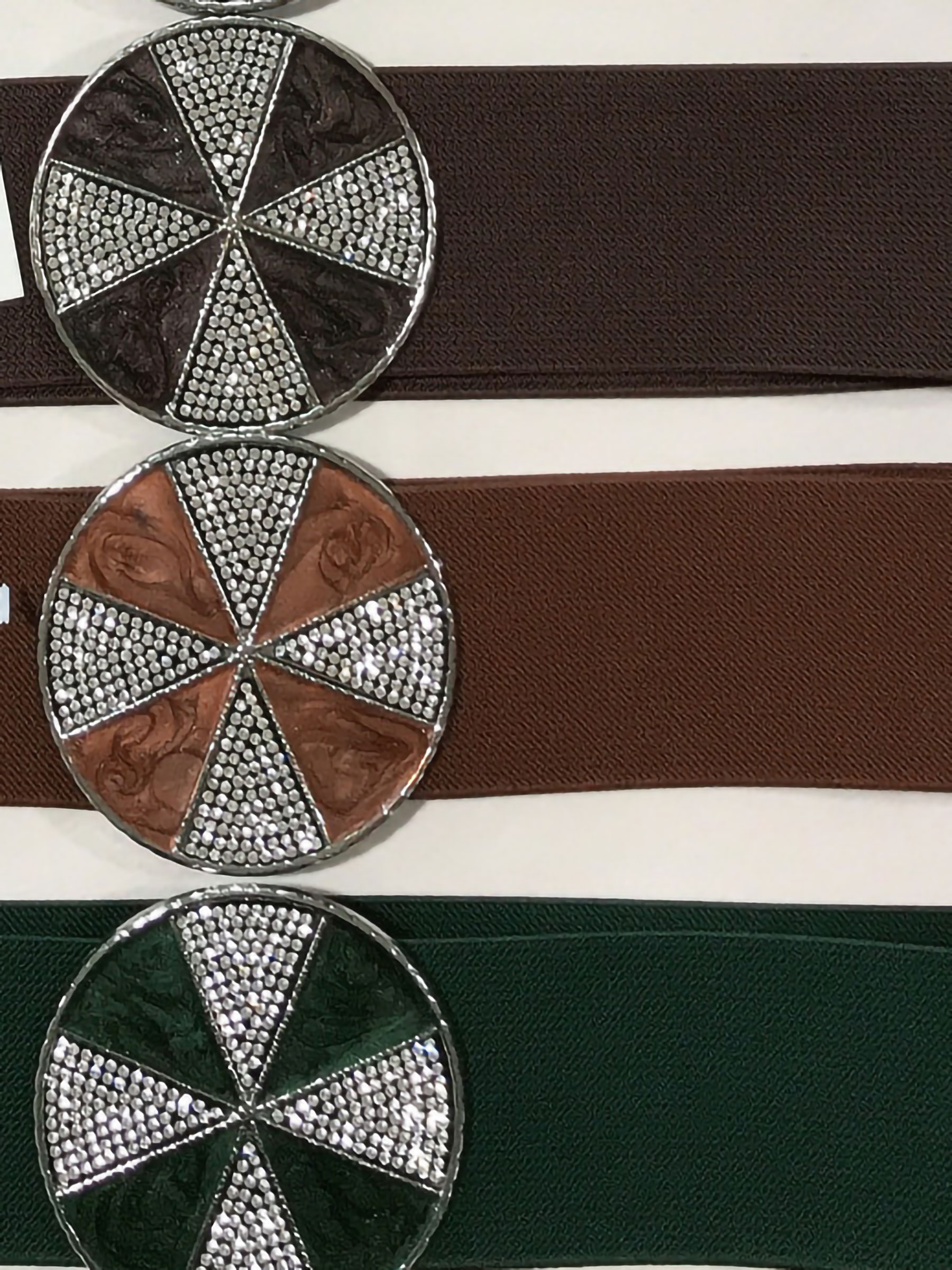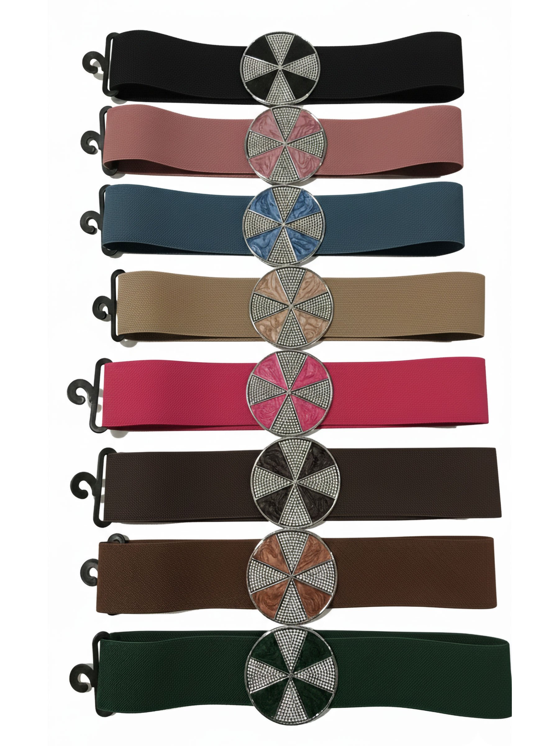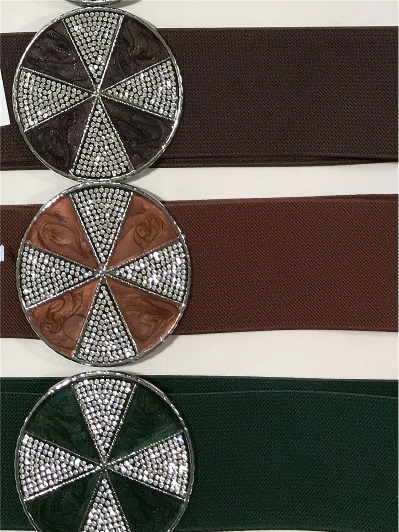 Detalles de cinturón elástico hebilla redonda strass HY-HP-6424