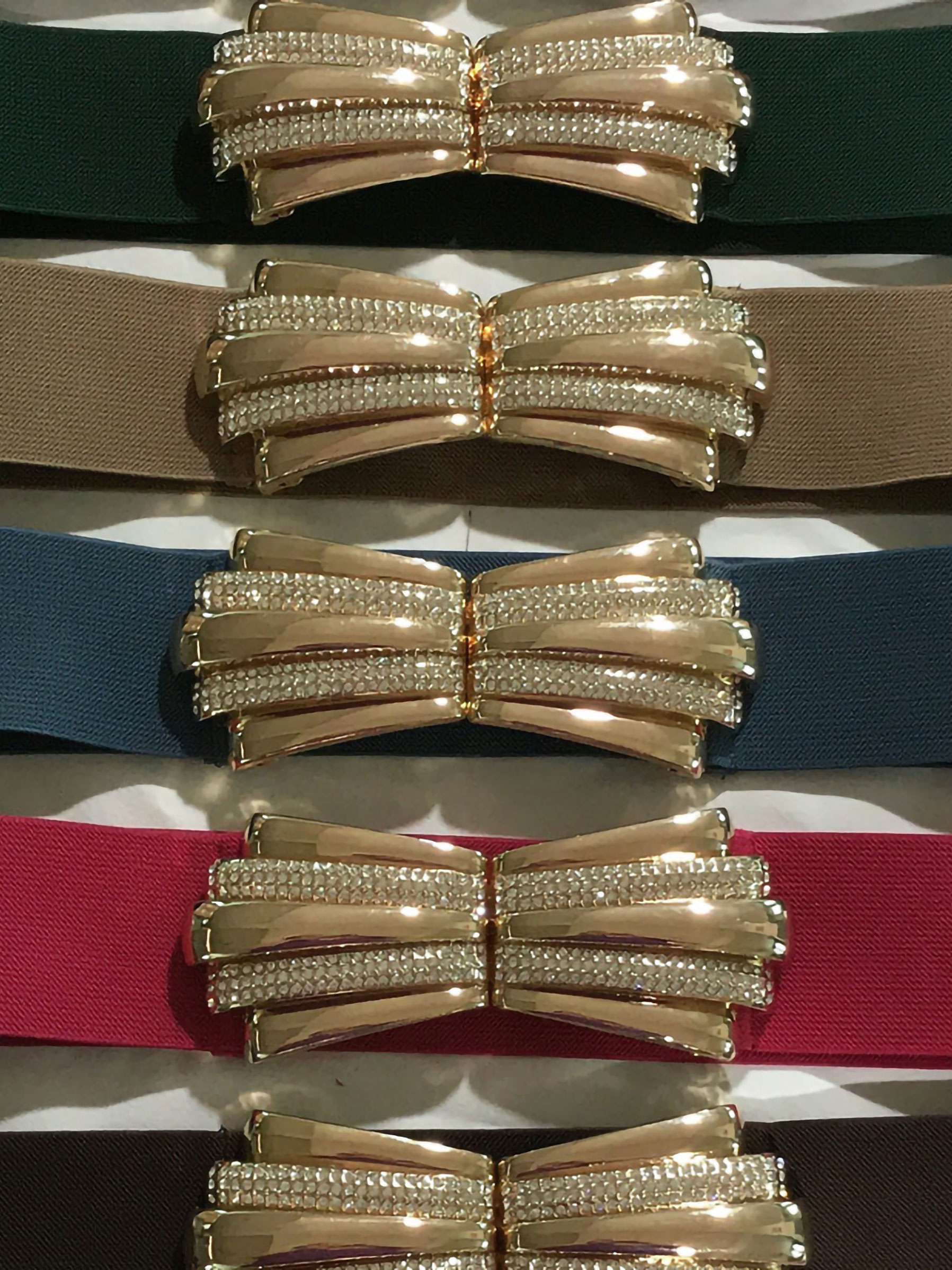 Detalles de cinturón elástico hebilla lazo strass HY-HP-6431