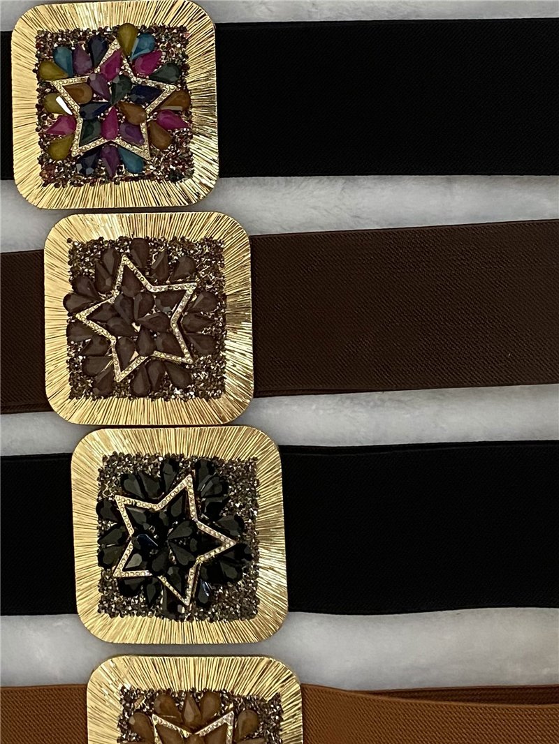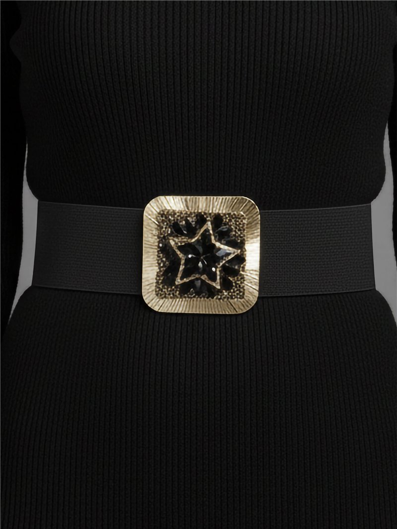 Detalles de cinturón elástico hebilla cuadrada estrella pedrería HY-HP-51136