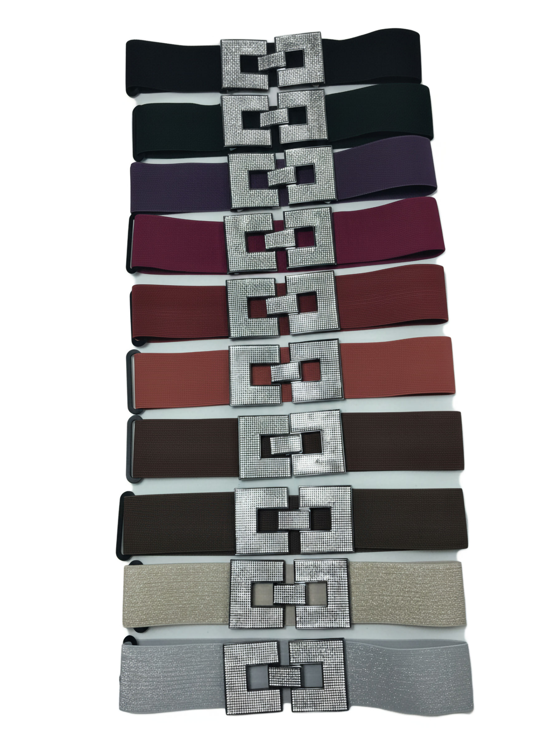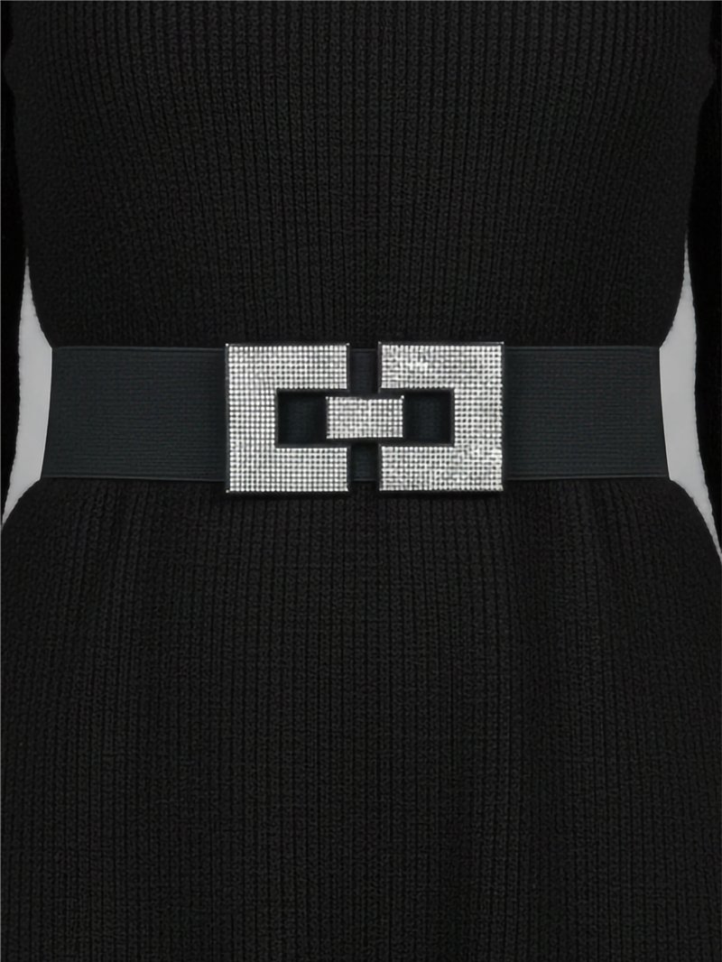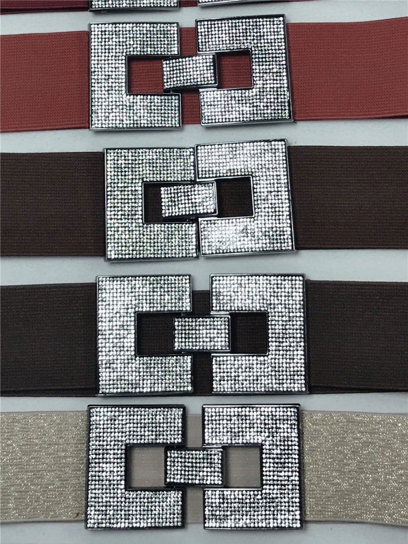 Detalles de cinturón elástico hebilla doble cuadrada con strass HY-HP-60025