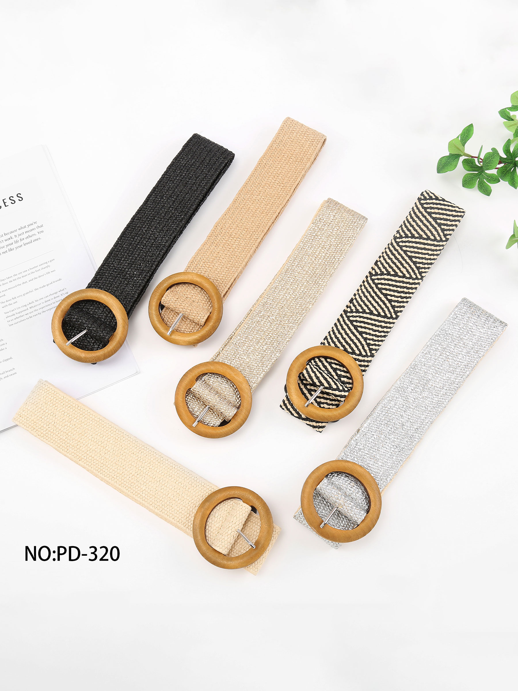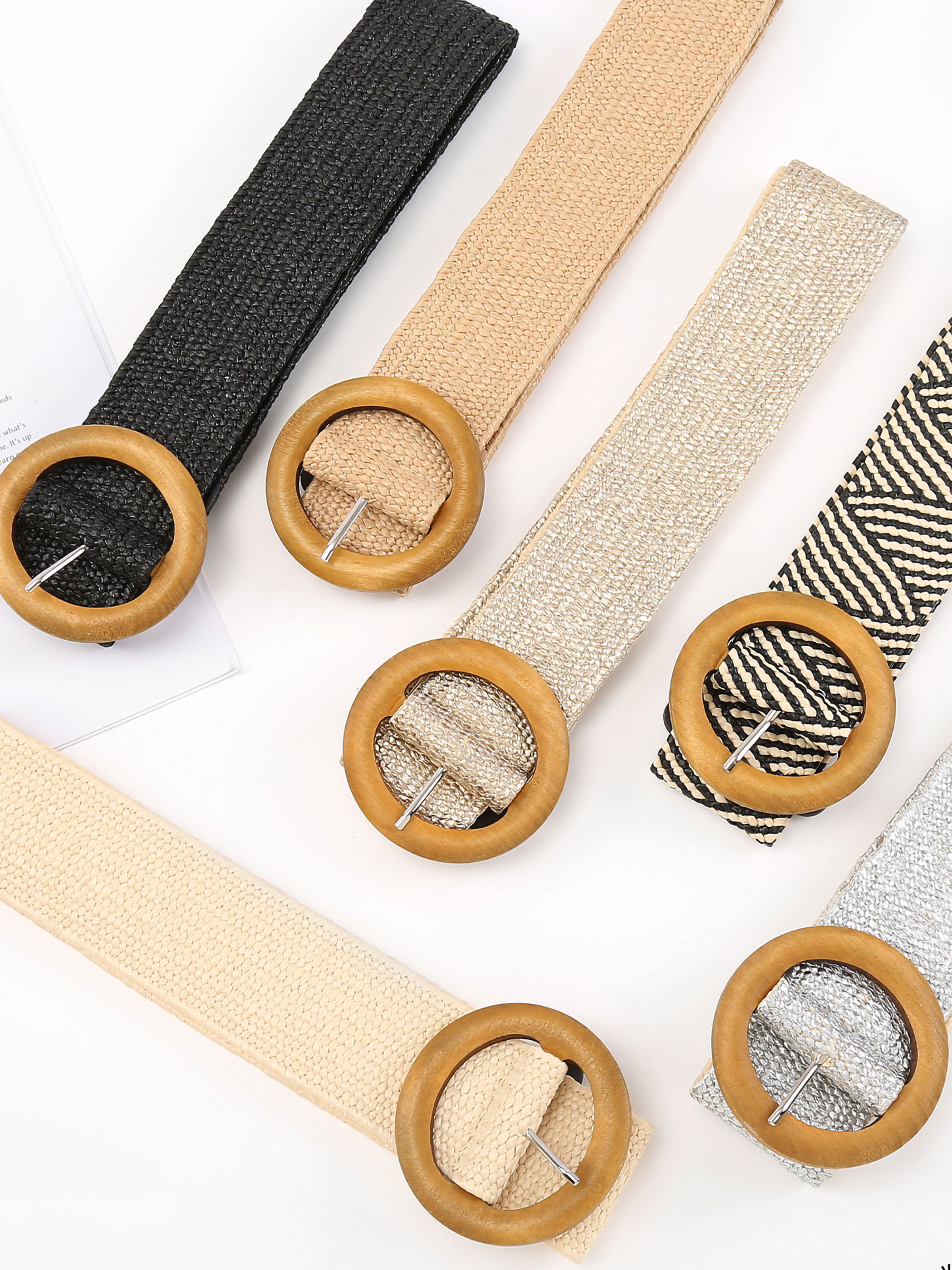 Cinturón elástico trenzado con hebilla efecto madera
