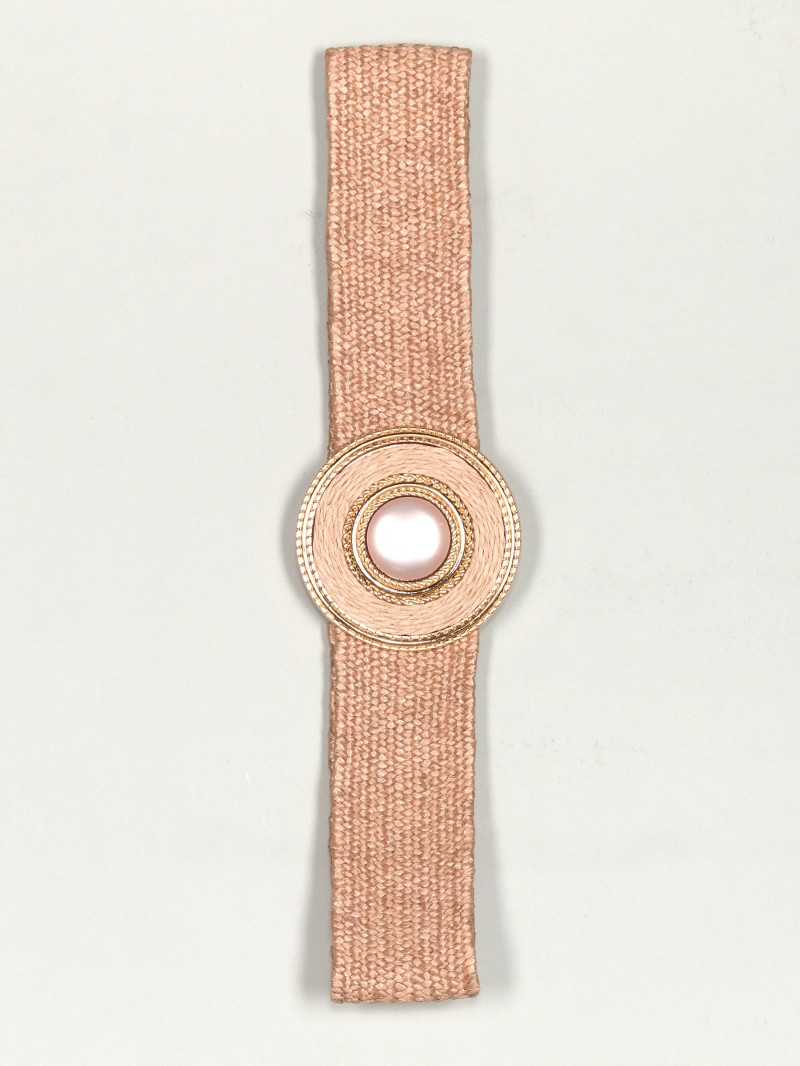 Cinturón elástico. Efecto rafia. Detalle abalorio de efecto piedra.