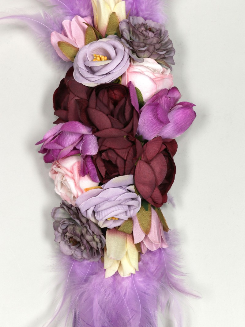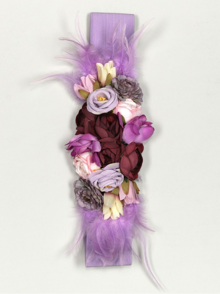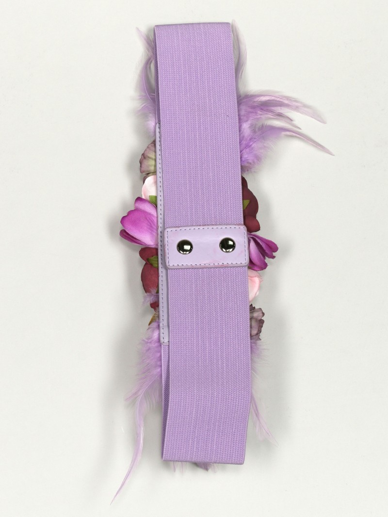 Cinturón elástico flores plumas lila