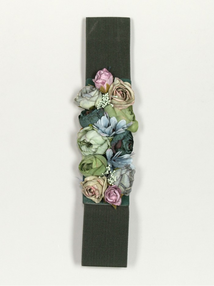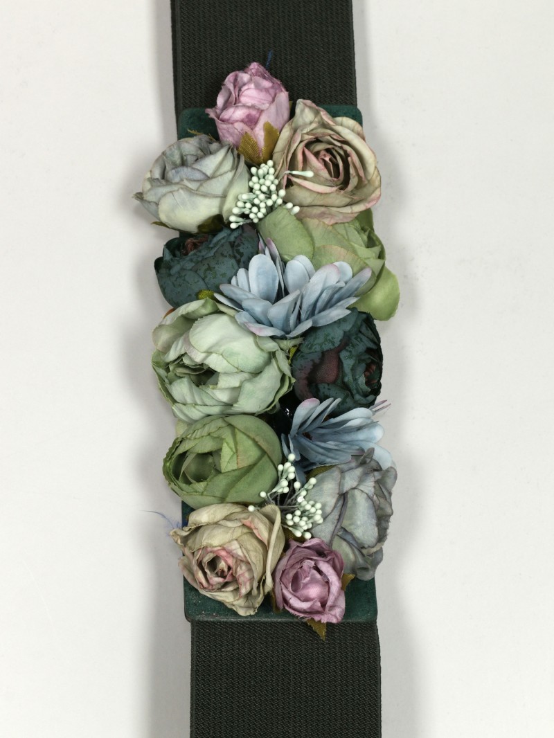 Cinturón elástico con aplicación de flores.