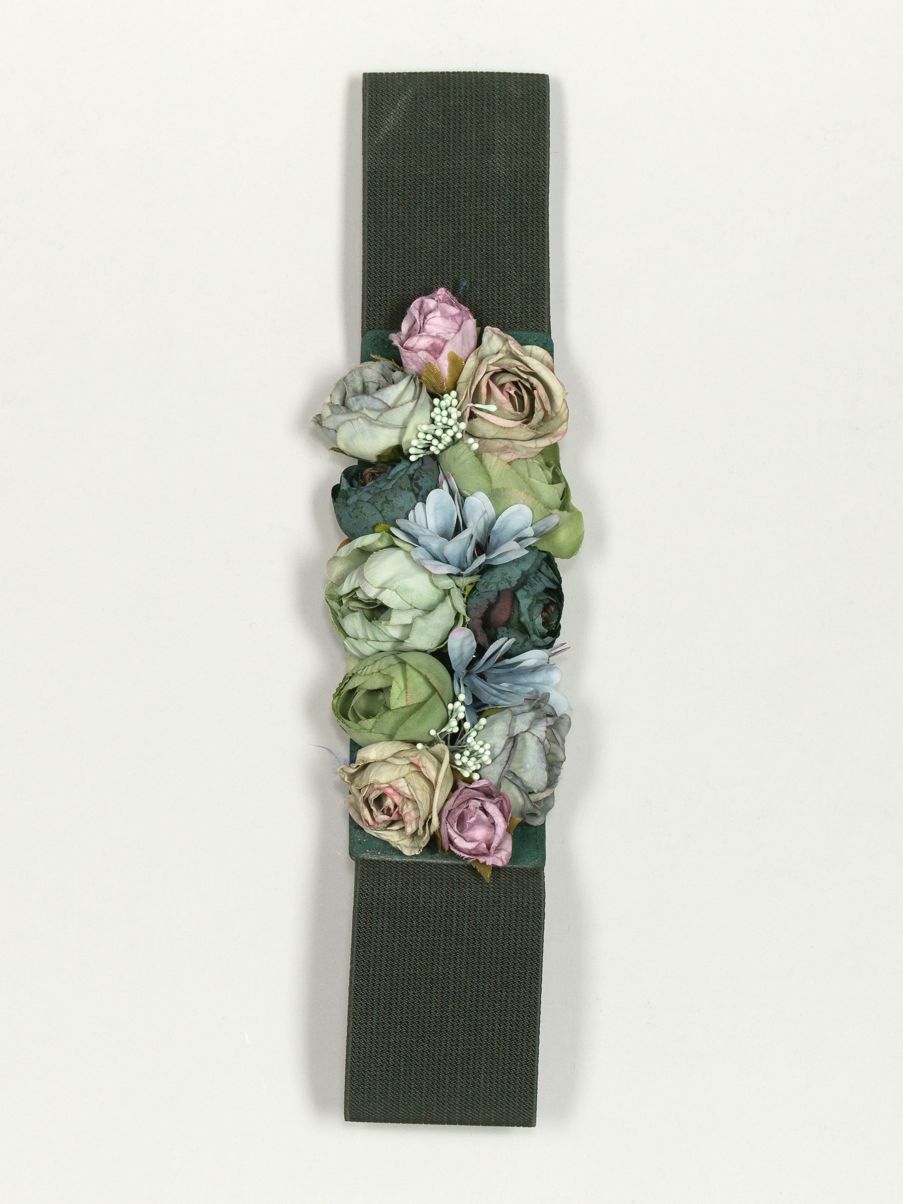 Cinturón elástico flores verde-militar