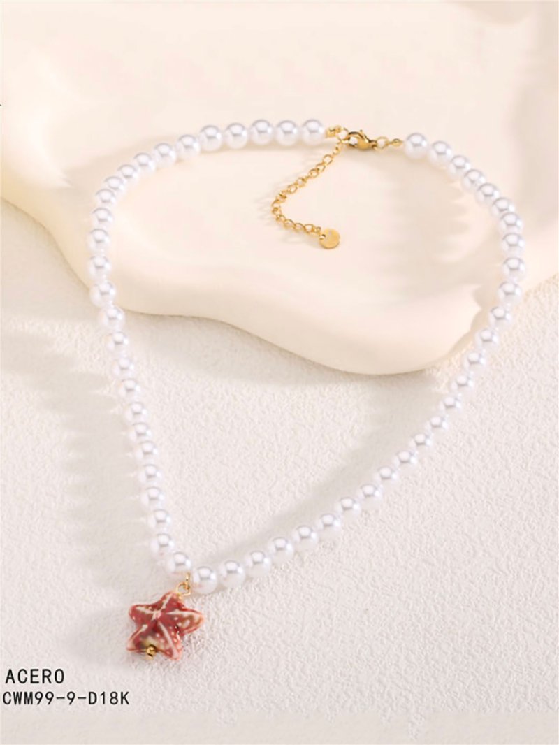 Detalles de collar perlas charm estrella de mar - acero inoxidable BS-CWM999