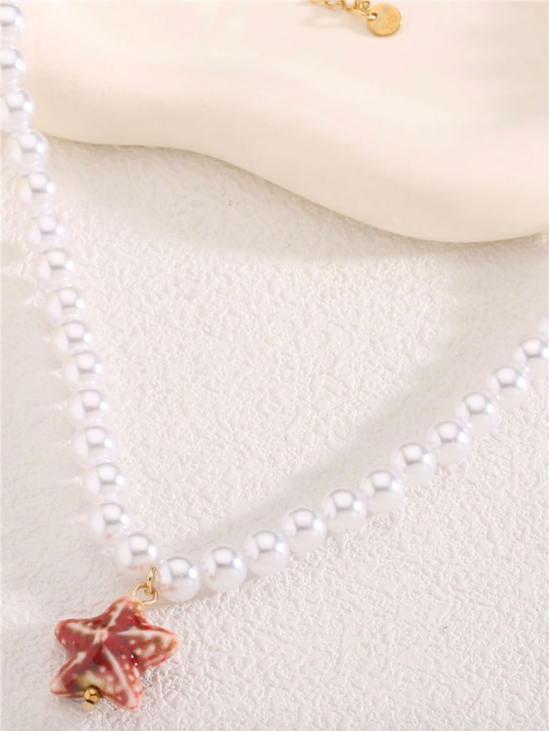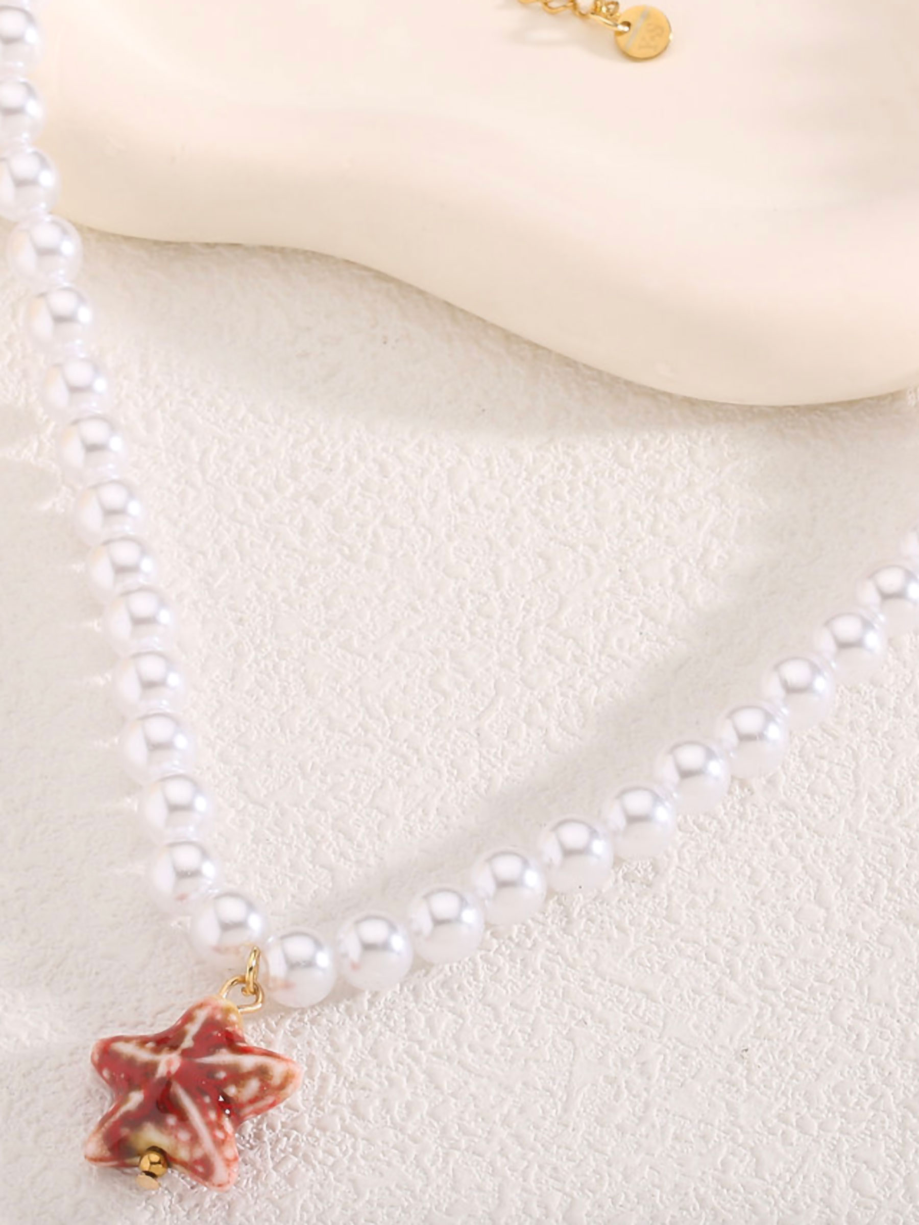 Collar con aplicación de perlas. Colgante de charm estrella de mar. Material de alta calidad: Elaborados en acero inoxidable, son resistentes al agua, no se oxidan ni cambian de color. ¡Diseñados para durar!