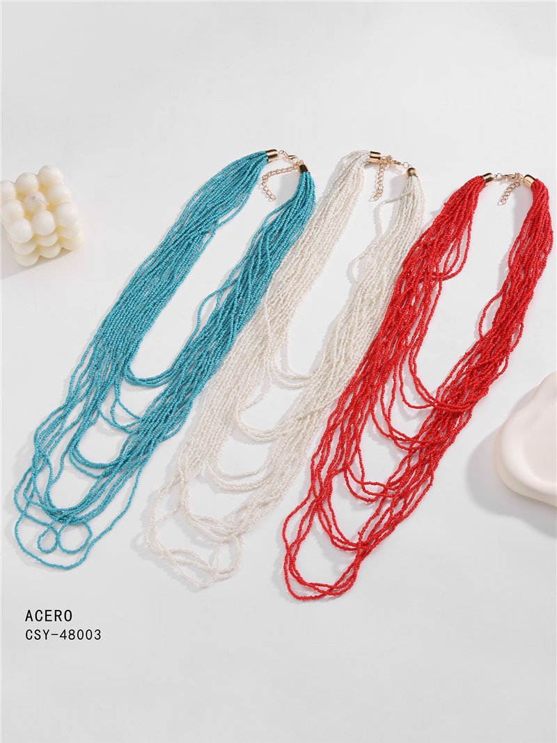Detalles de collar largo múltiple con abalorios - acero inoxidable BS-CSY48003