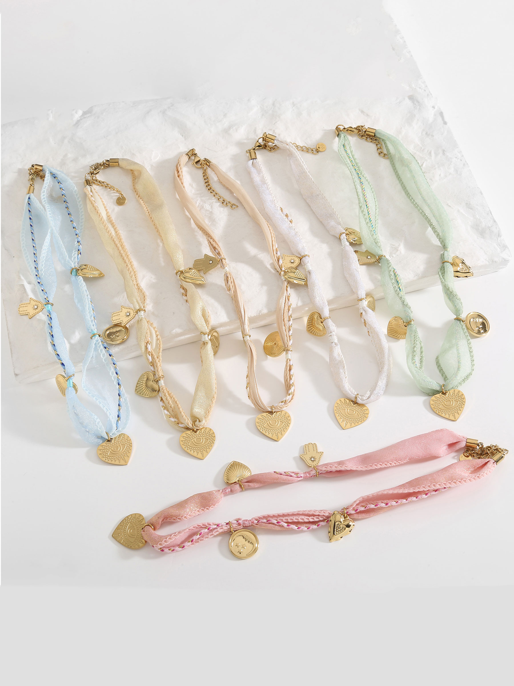 Detalles de collar cadena corazones con cinta - acero inoxidable BS-HYT60927