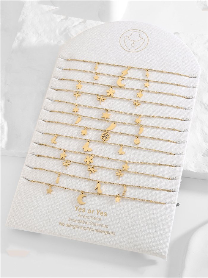 Conjunto de 12 collares cadenas con colgantes - Acero inoxidable