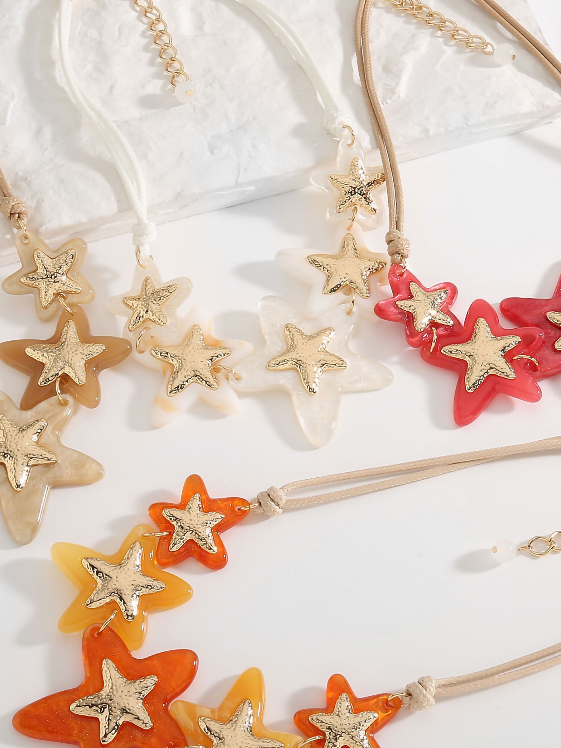 Detalles de collar cuerda estrellas de resina - acero inoxidable BS-NSL700111