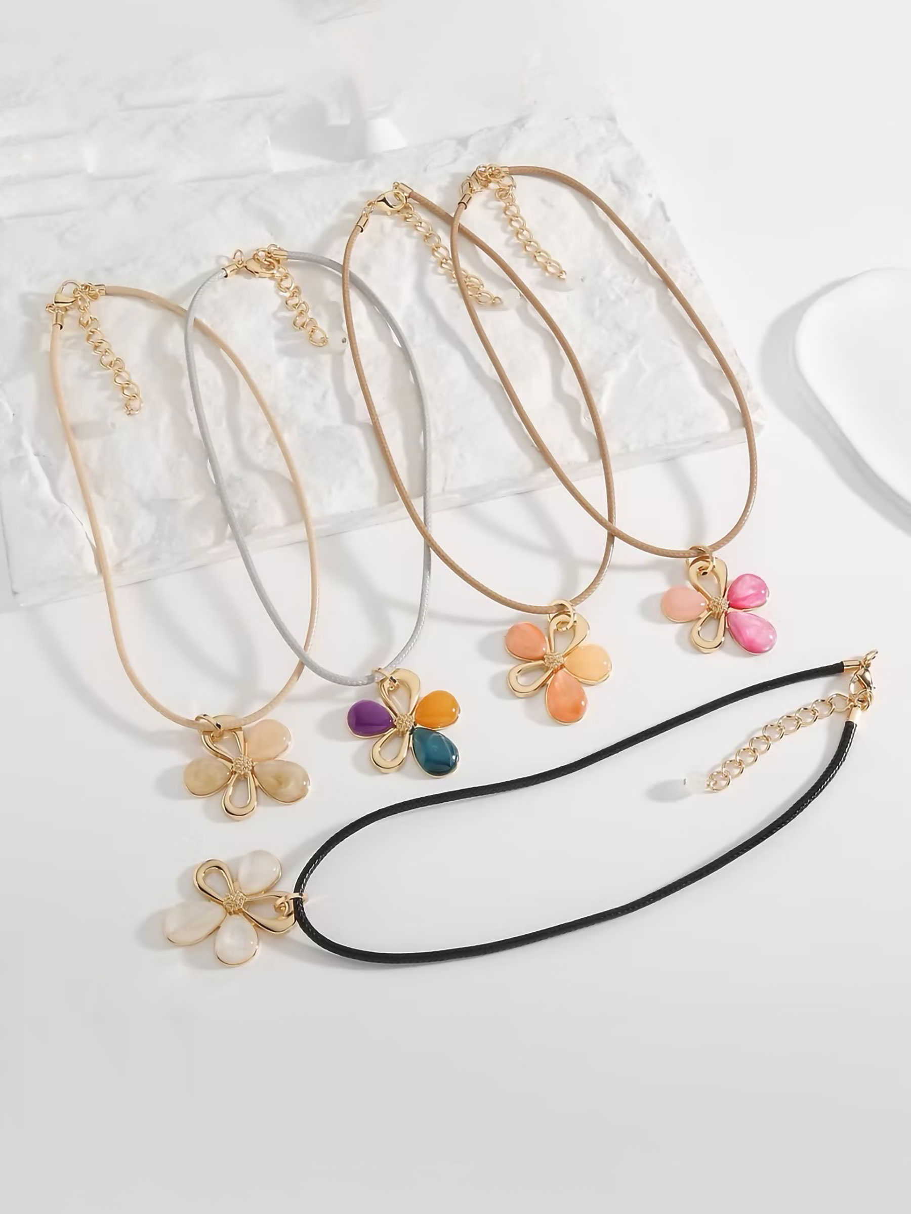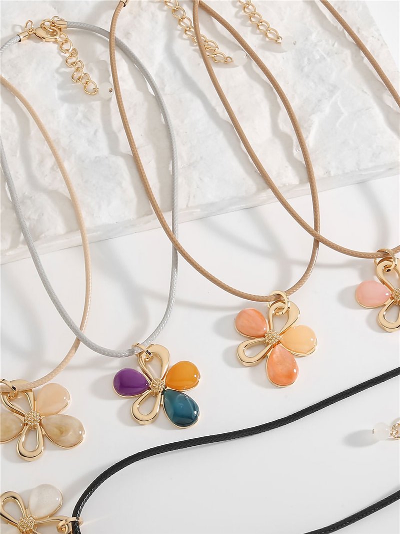 Detalles de collar cuerda flores de resina- acero inoxidable BS-NSL700129
