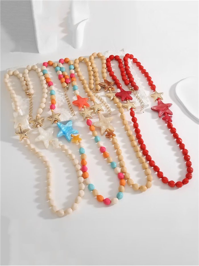 Detalles de collar estrellas de resina con abalorios efecto piedra - acero inoxidable BS-NSL700124