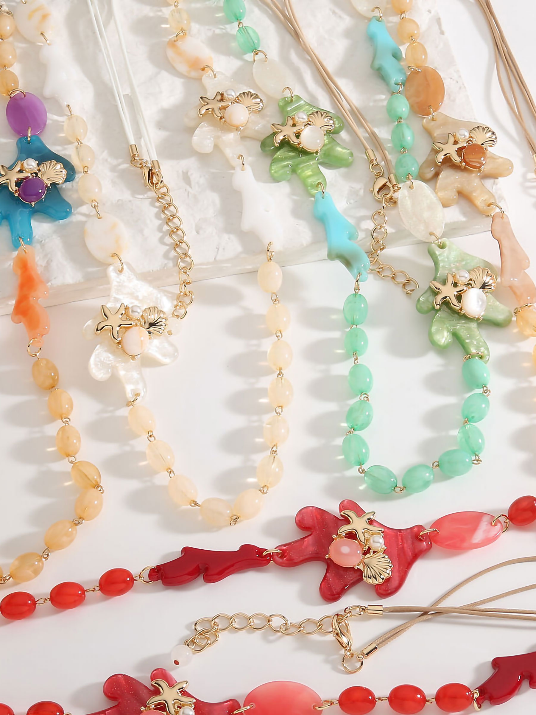 Detalles de collar cuerda bajo el mar de resina con abalorios efecto piedra - acero inoxidable BS-NSL700126
