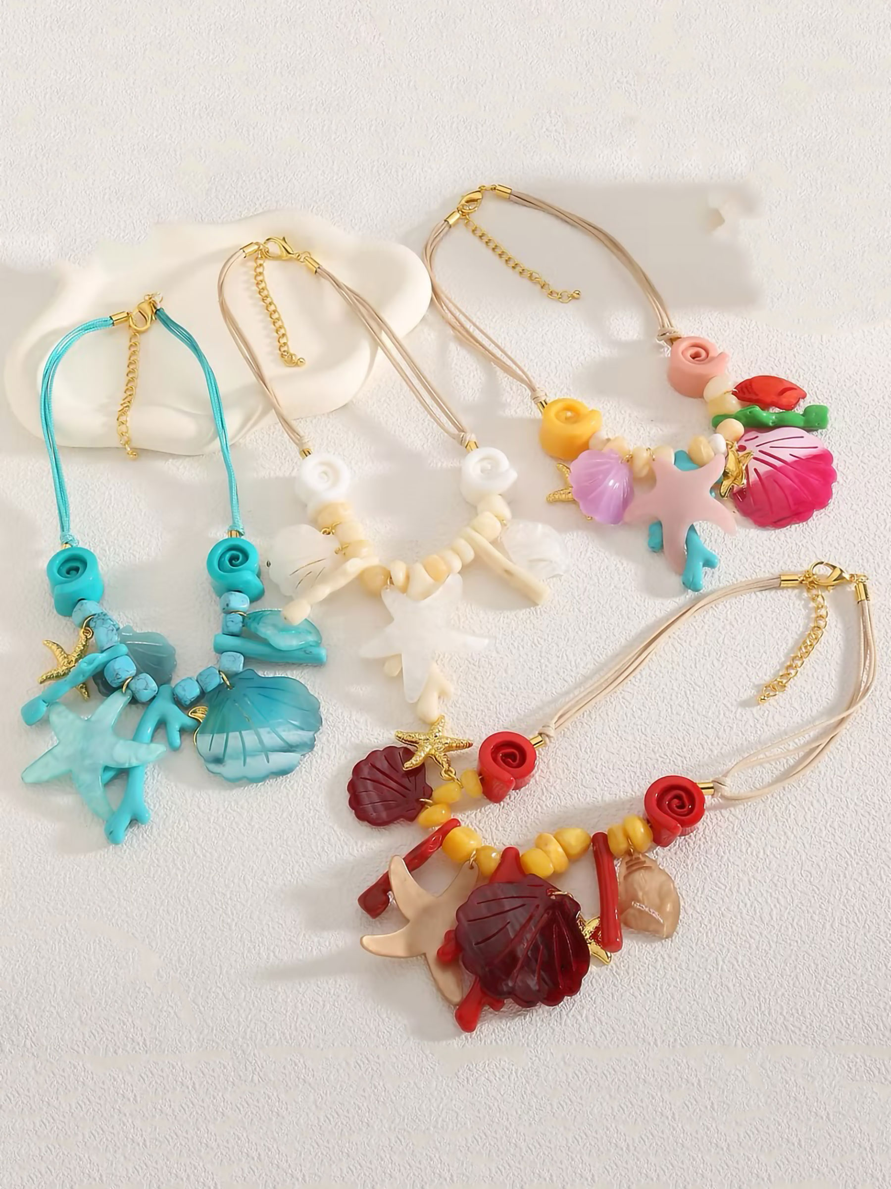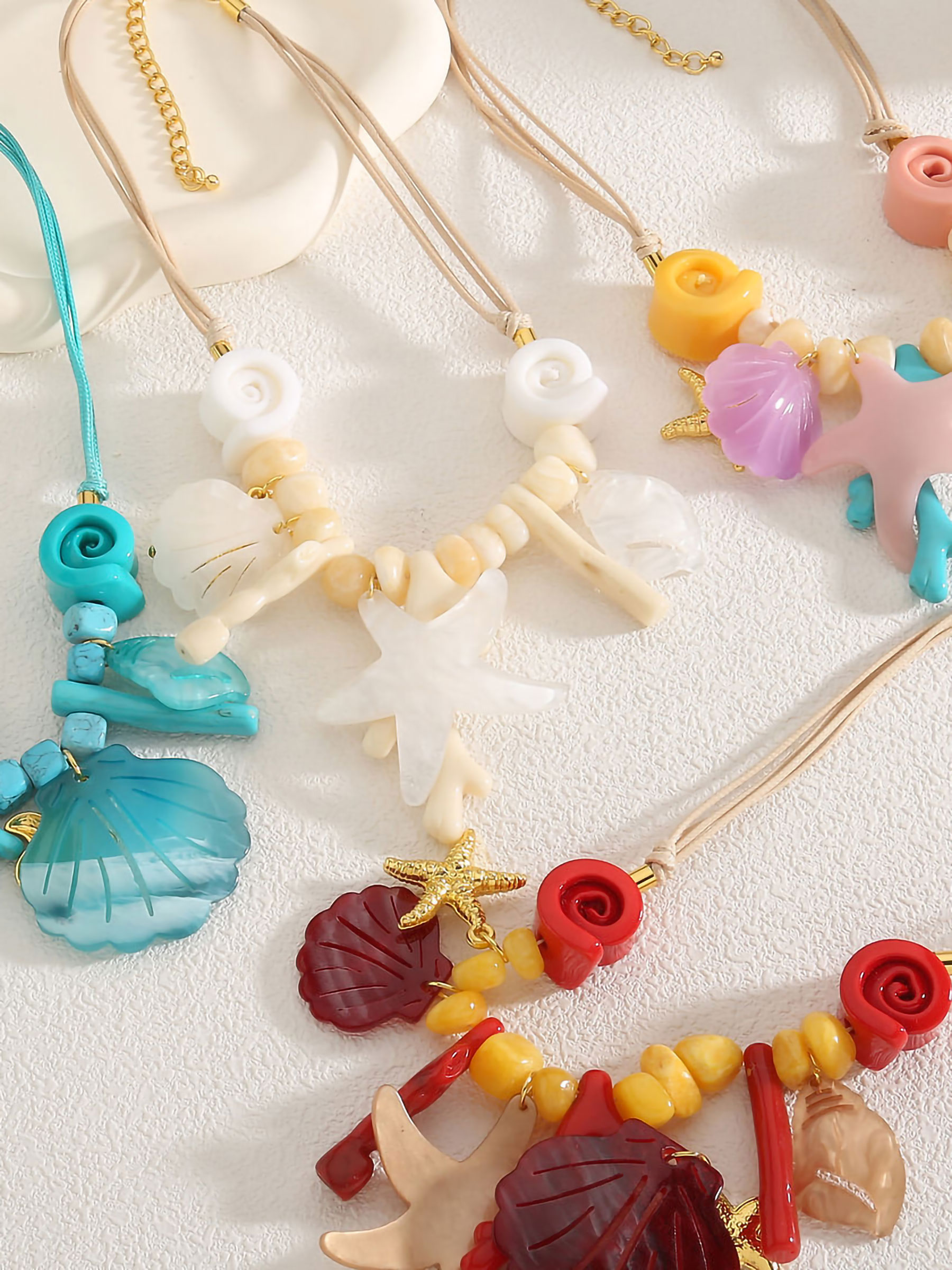 Detalles de collar cuerda bajo el mar de resina con abalorios efecto piedra - acero inoxidable BS-DY920038