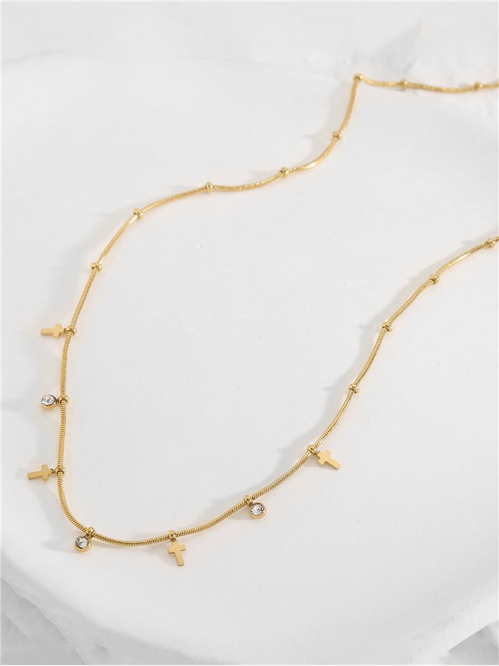 Detalles de collar colgante de cruz con circonitas - acero inoxidable BS-DH61321-DH61322