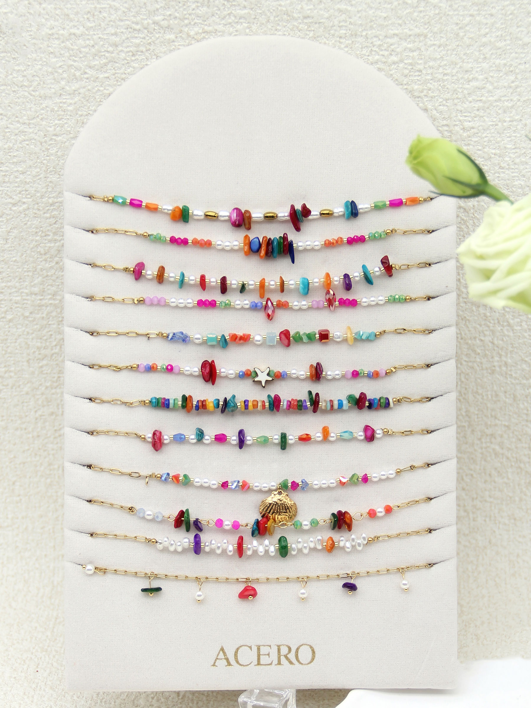 Detalles de conjunto de 12 collares cadenas con piedras y perlas - acero inoxidable - expositor incluido BS-LXZ8162