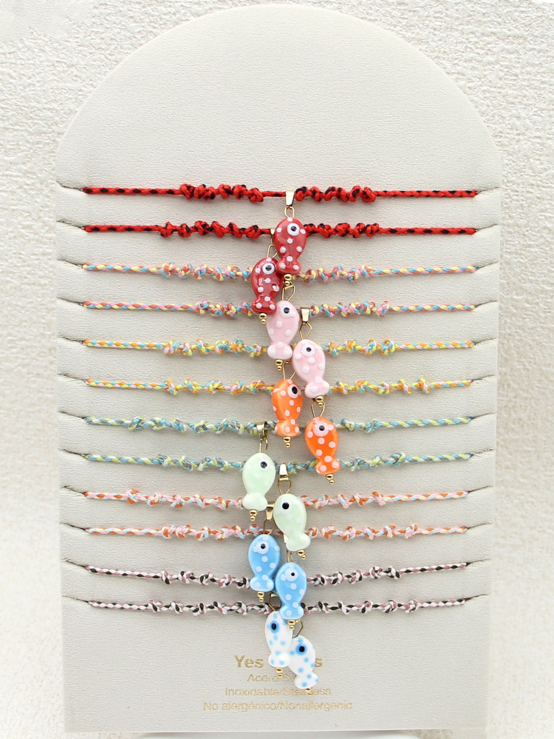 Conjunto de 12 collares ajustables de cordón con charm pez - Expositor incluido
