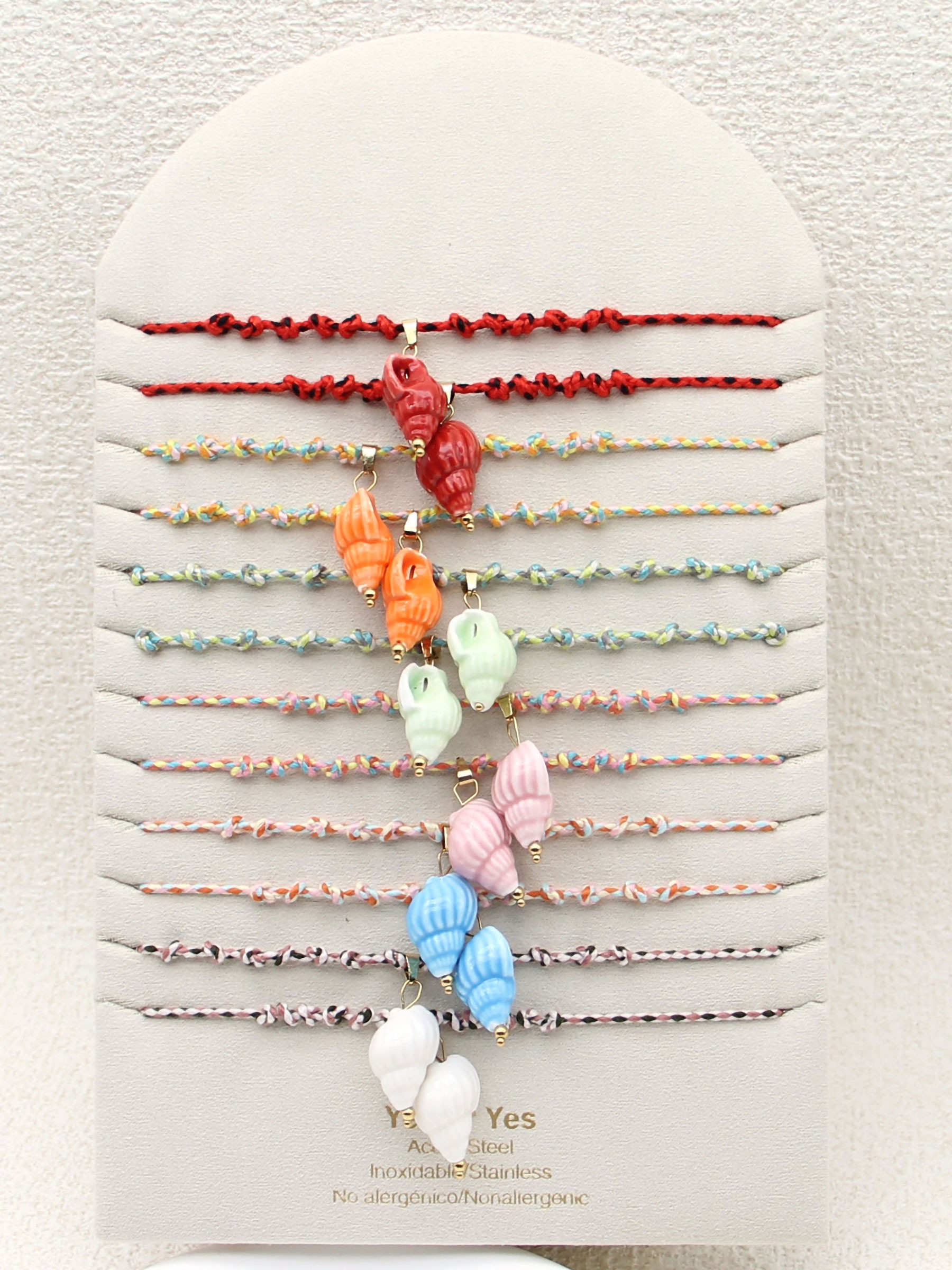 Conjunto de 12 collares ajustables de cordón con charm caracola. Expositor incluido.
